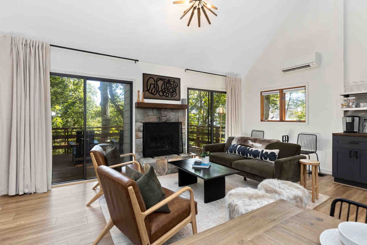 Escape to this bright, spacious mountain retreat with an open-concept layout and plenty of natural light. Walkable to the trails and 5 minutes to the slopes. Enjoy a fully stocked kitchen, cozy fireplace, and screened porch for relaxing after a day of skiing, hiking, or wine tasting. With 2 King bed ensuites, a queen bedroom, and a fun bunk room, there’s space for everyone to unwind. Thoughtfully designed for comfort, it’s the perfect home base for your getaway.