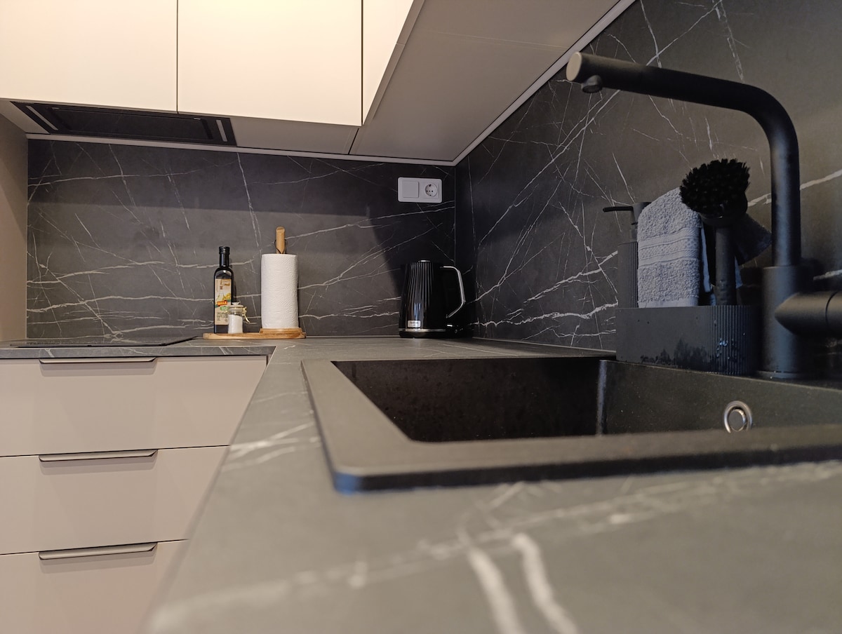 L-appartament għandu kamra tas-sodda 1 u salott 1 bi kċina. Huwa kompletament mgħammar, għandu Wi-fi veloċi ħafna, televiżjoni intelliġenti. Il-klijenti dejjem se jsibu ftit kafè u te. Parkeġġ privat mingħajr ħlas għall-parkeġġ pubbliku. L-appartament jinsab f 'post adattat ħafna; huwa ċ-ċentru tal-belt, iżda huwa pjuttost faċli biex tilħaq kwalunkwe post minnu. Id-dar hija mibnija mill-ġermaniżi fis-sena 1905. Diversi waqfiet tal-karozzi tal-linja huma fil-qrib, ħwienet ukoll jistgħu jintlaħqu b 'mixja ta' 5 minuti.