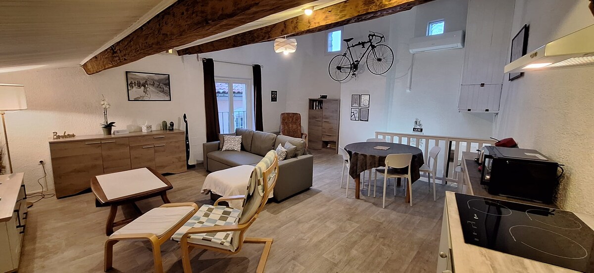 Studio li tinsab f' dak li qabel kien manastir tar-raħal, 20 km 'il bogħod minn Ventoux. Gawdi n-natura sabiħa u selvaġġa hawnhekk. Studio ta' 29m² b' sodda doppja kbira jew 2 sodod ta' wieħed skont l-għażla tiegħek. Ix-xugamani u l-bjankerija tas-sodda huma pprovduti. Żona tas-salott tat-TV, wifi, mejda tal-ikel, gwardarobba, kamra tal-banju bid-doċċa, hair dryer, tojlit separat, kċina mgħammra (friġġ, hob, forn, sink, dishwasher). Platti pprovduti. pass pass kwiet ħafna. Mixja ta' 2 miljun sal-ħwienet. Parkeġġ bla ħlas fuq il-post.