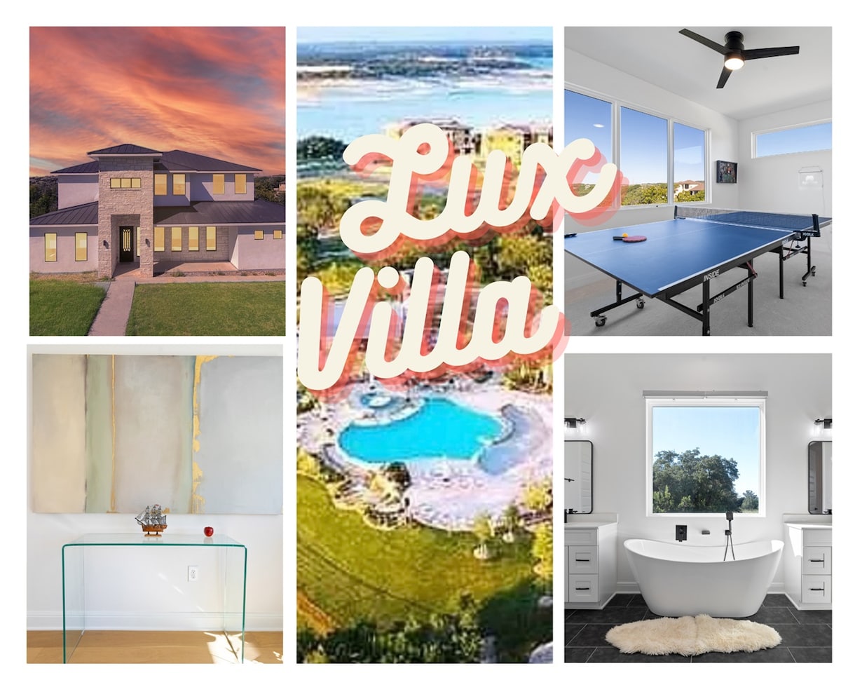 Luxurious 3 kmamar tas-sodda 3 kamra tal-banju l-akbar villa tal-pjan tal-art f 'The Hollows. Veduti mill-isbaħ tal-lag u l-għoljiet minn kull tieqa, mingħajr għonqek biex tara l-lag mid-dar tagħna. Il-lag jinsab quddiem il-bini tagħna, mhux mal-ġenb. Il-kumditajiet ta 'Hollows huma inklużi. Villa torqod komda u tiekol sa 8 klijenti. Għandna pakkett n play u siġġu għoli għall-iżgħar klijenti tagħna. 3 grawnds ġodda bil-ballun tal-pickle. Meta tkun lest/a biex tirrilassa l-Lag Travis tiegħek, nittama li tkun il-klijent tagħna!