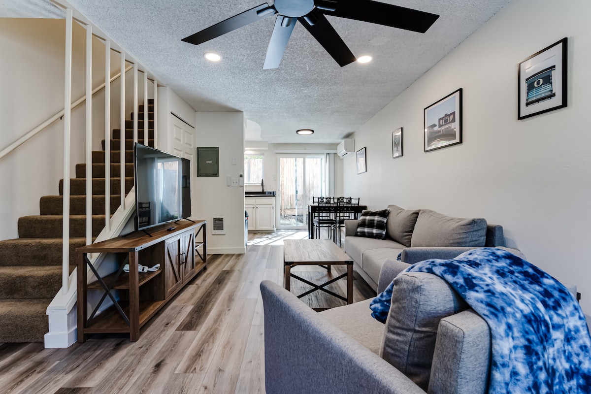 Gawdi l-istil u l-kumdità ta' dan il-Hideaway ġdida fjamanta li tinsab f' viċinat paċifiku u ċentrali biss 3 minuti 'l bogħod mix-xiri/ikla fiċ-Ċentru ta' Oakway u 7 minuti biss mill-Università ta' Oregon. Gawdi l-ħin tiegħek, imbagħad ejja d-dar biex tirrilassa bil-kumditajiet kollha fost intern nadif u eleganti. Jew, neħħi ftit fwar billi tilbes ir-rekord tal-vinil favorit tiegħek, tbaxxi d-dwal u tixxarrab fil-banju ġgant tiegħek b' żewġ persuni. Skont ta' 10% talli tibbukkja l-għażla li ma titħallasx lura.