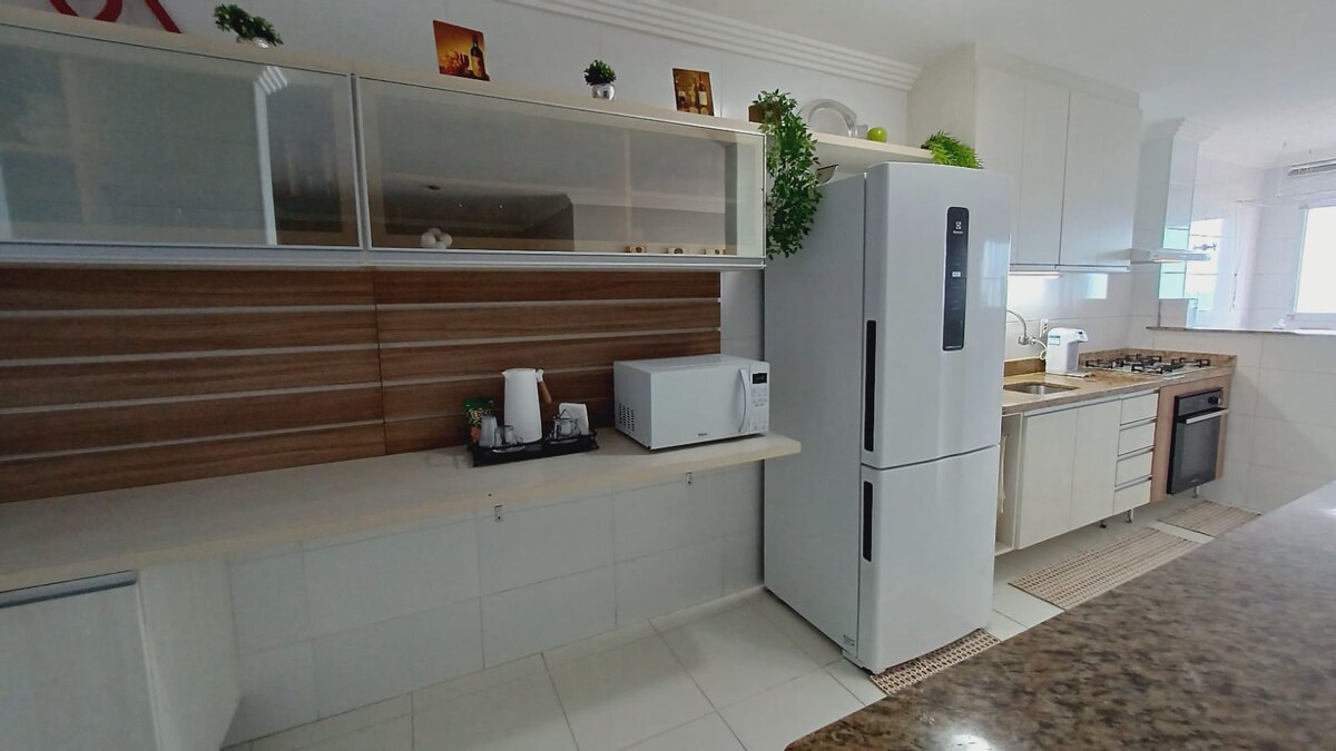 📍 Agħmel kollox bil-mixi! * 50m do Carrefour, Extra, spiżeriji, fiera u ħafna bars, ristoranti, McDonald' s, Habib' s u Av. Costa e Silva. 🌊 VISTA DESLUMBRANTE- Beira mar - Guilhermina Beach! 🕗 Il-flessibbiltà taċ-checkin u taċ-checkout, l-ebda tariffa u skont il-possibbiltajiet. 🗝️ Self Checkin Fibra 📶 tal-Wi-Fi - 400 Mega. 📺 SmartTv-50 Pol. 🍖 Kitt tal-BBQ. 🪟 Ħġieġ tal-gallarija. 🛌 Bjankerija tas-sodda - 100% qoton