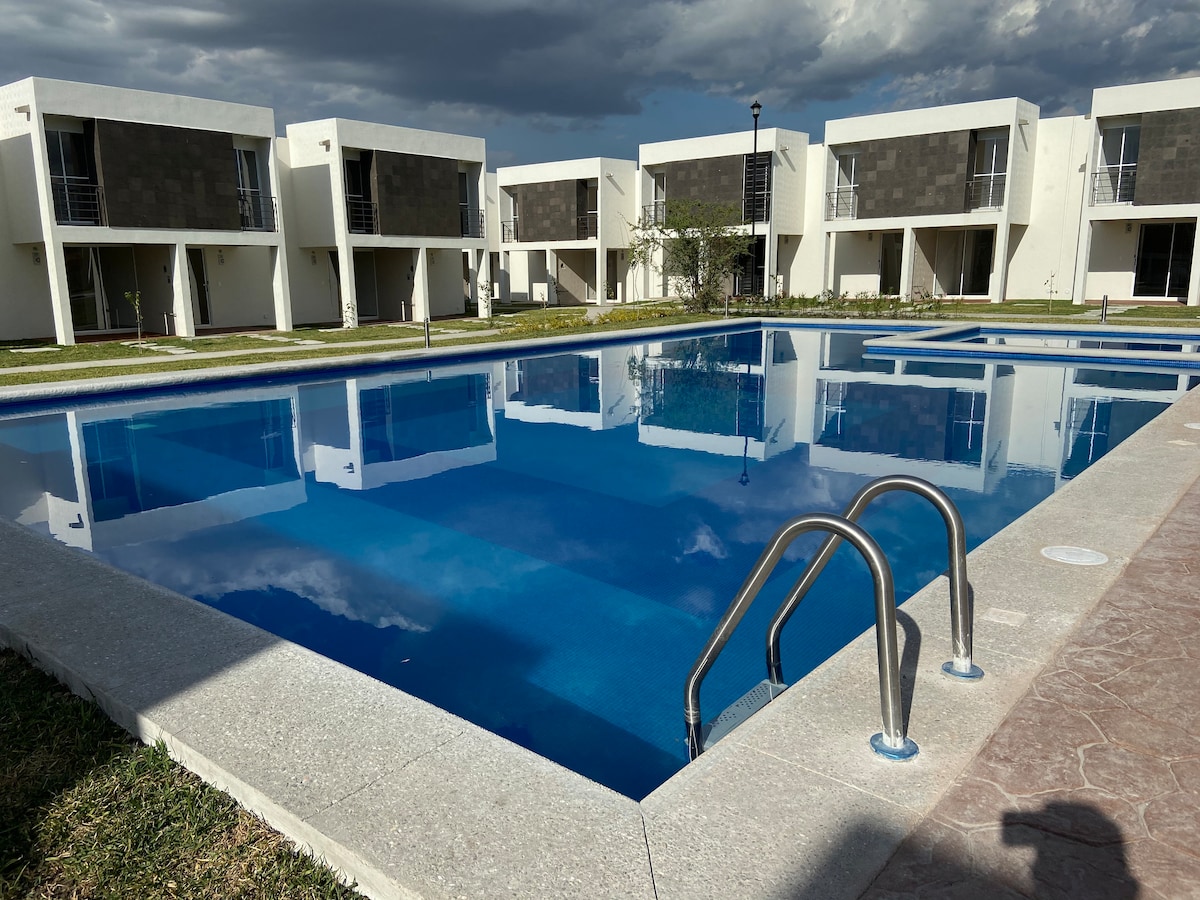 🌿 Escápate a Cuautla, Mor, a 90 min de CDMX y Puebla. Ideal para familias y parejas: patio grande, alberca climatizada con paneles solares, fogata, terraza con hamaca, asador, WiFi veloz, estacionamiento privado, juegos para adultos y niños. Te hospedarás en Departamento pequeño de 50m2, equipado para 4 adultos+1 infante 3 años (duerme en cuna) Cerca de Yecapixtla, Six Flags, Skydive y Oaxtepec. Reserva con nosotros y te recibimos con kits premium de bienvenida para consentirte.