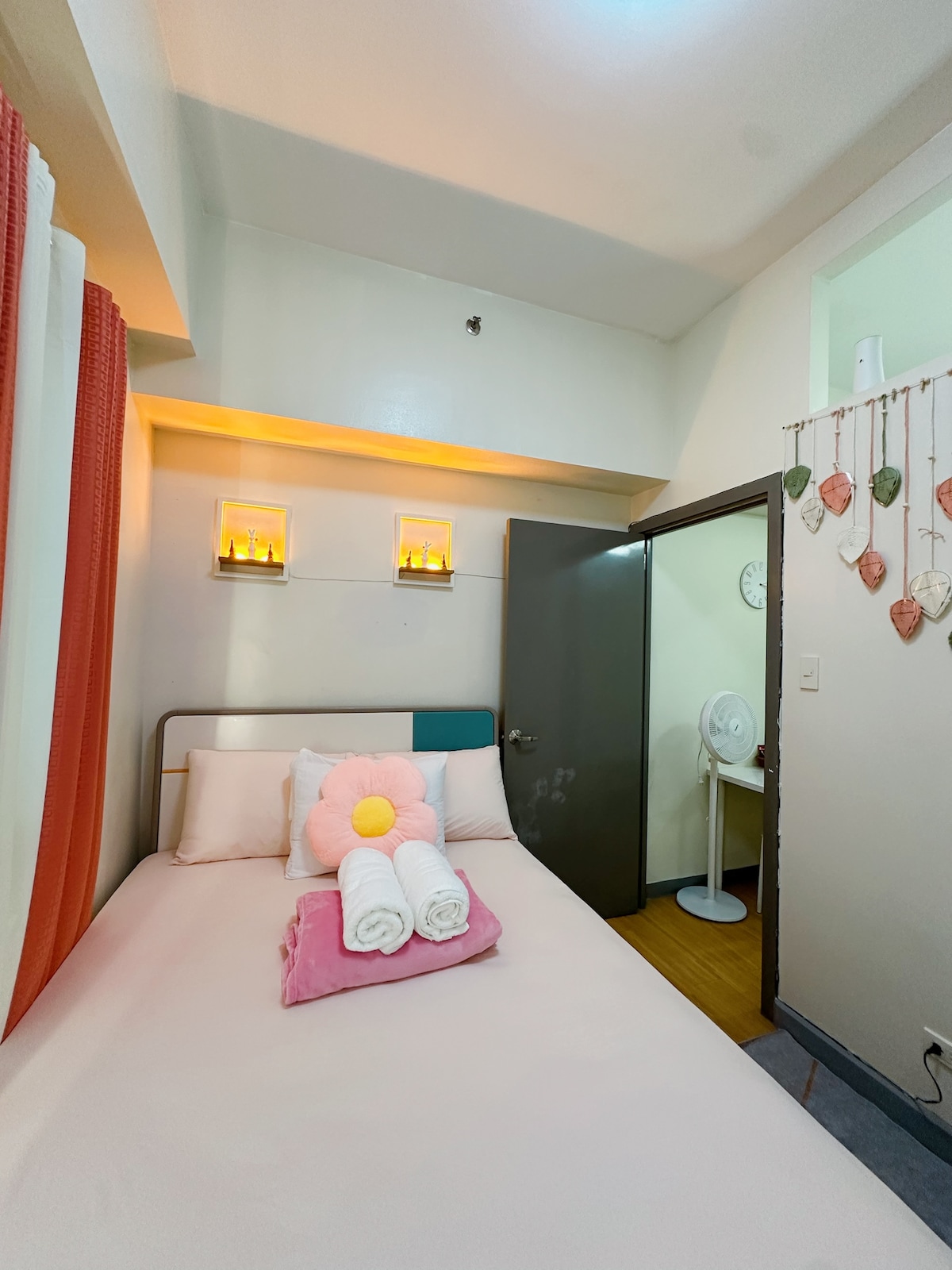 Ilbies kondominjali konvenjenti u komdu għal kull klijent. Shangri La EDSA/Plaza 0.6KM SMDC Light Mall 0.6KM MRT Shaw Boulevad 0.5KM MRT Boni 0.7KM L-Ajruport NAIA 13 km jinsab fis-36 sular b' veduta sabiħa lejn EDSA. B' kumditajiet bażiċi u kitt tal-iġjene tal-klijenti, mimlija divertiment b' sodda doppja waħda, Aircon, TV bla ħlas b' Netflix , Wifi bla ĦLAS,mejda u siġġijiet, forn Mircowave, u Friġġ eċċ.