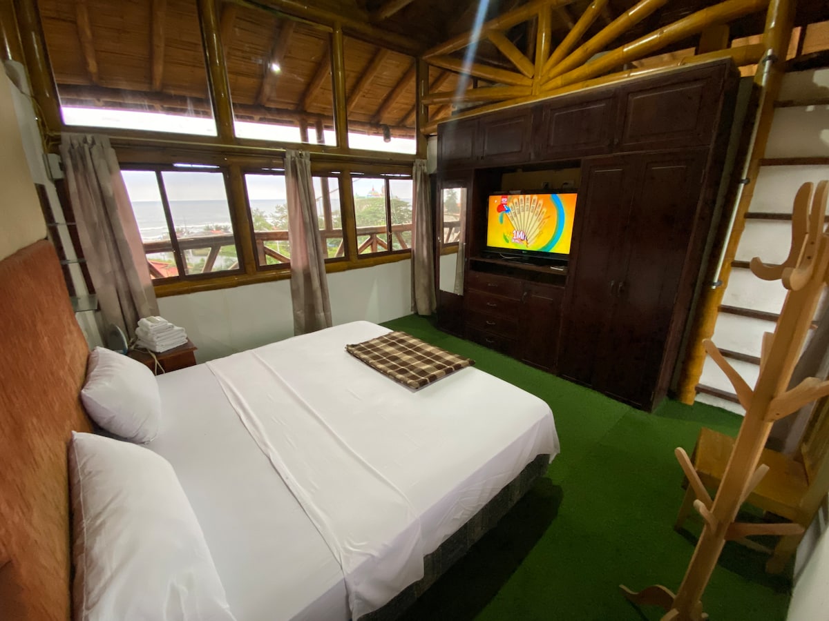 Kamra tas-sular t' isfel b' sodda doppja u żewġ bunk beds b' 1.5 sodod, ideali għal gruppi jew familji sa 6 persuni. Għandha AC, kamra tal-banju privata funzjonali, Smart TV b' Netflix, xkaffa tat-tip armarju u hanger tal-ħwejjeġ. Komdu u ventilat sew. Aċċess bla ħlas għal pixxina, kċina, grill, ġonna, hammocks u iktar. 7 minuti biss mill-bajja u ċ-ċentru ta' Montañita, iżda 'l bogħod mill-istorbju. Kwiet u spazju x' taqsam mal-oħrajn.