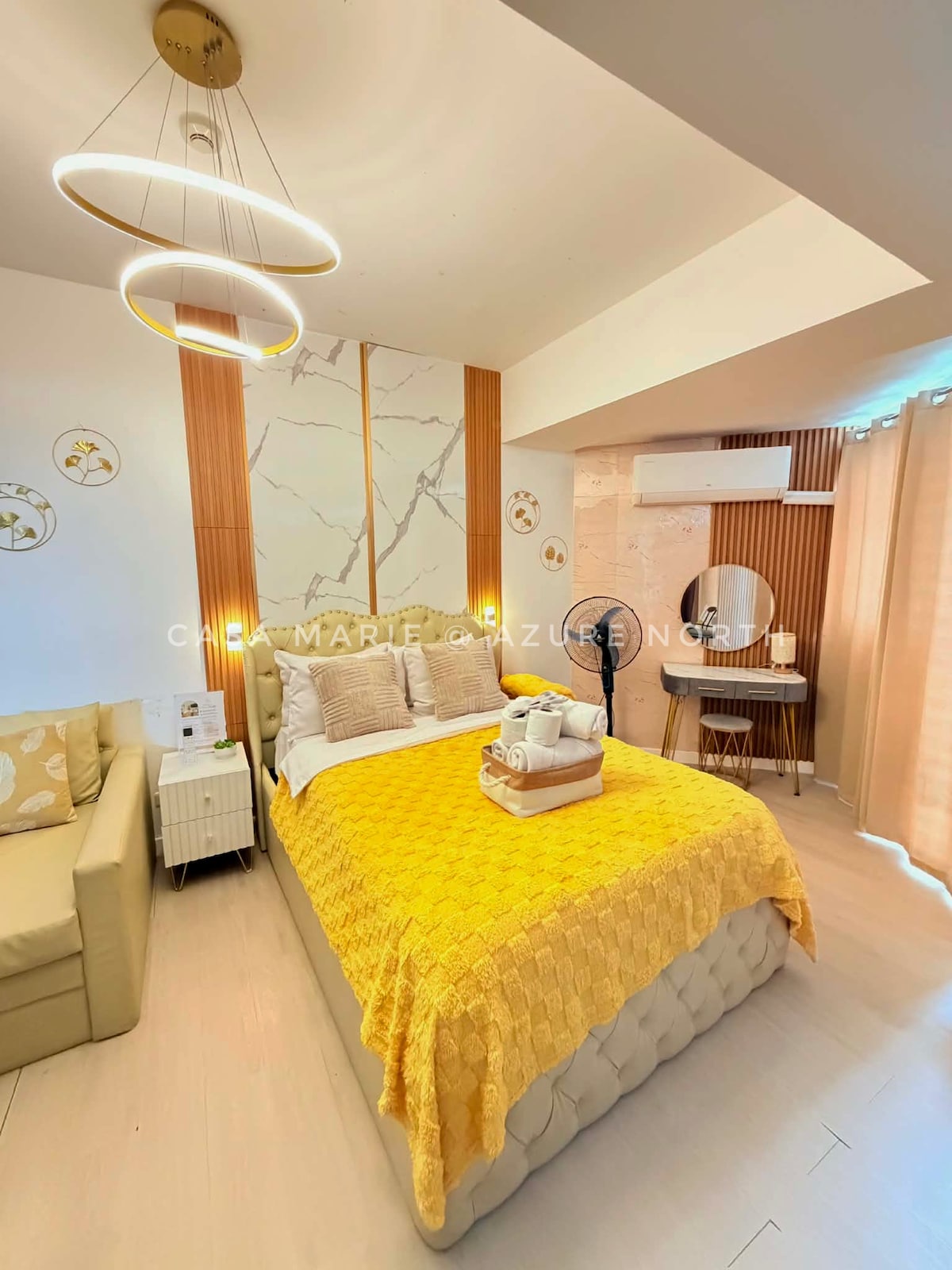 Żommha sempliċi f 'dan il-post paċifiku u li jinsab fiċ-ċentru, fil-qalba ta' Pampanga. Dan il-kondominju huwa maħsub sew biex jissodisfa l-ħtiġijiet kollha taż-żjara tiegħek. Tista 'litteralment toqgħod biss waqt li Netflix u ssajjar l-ikliet favoriti tiegħek billi tuża l-appliances tal-kċina nodfa u nodfa tagħna. Għandna wkoll mejda tal-ikel li faċilment tinbidel f 'żona ta' studju u xogħol eleganti. Il-gallarija tagħtik veduta tal-attrazzjonijiet tal-belt u l-Mt Arayat! Dal-post imfassal biex tħossok qisek tixtieq toqgħod għal iktar żmien!