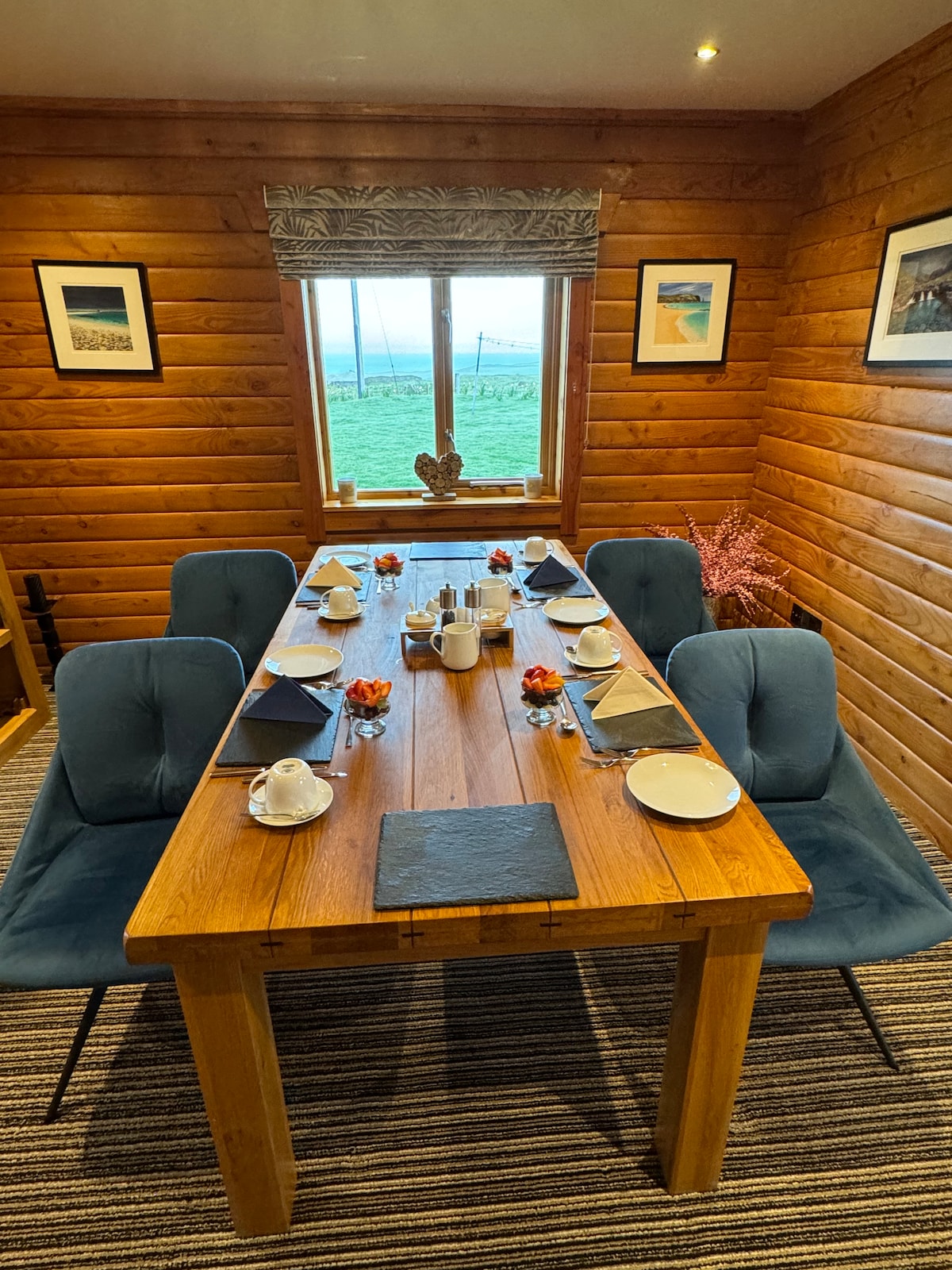 Gael hija kabina moderna fuq croft li taħdem, li turi veduti bla waqfien fuq il-bajja ta' Portree, Ben Tianavaig u l-għoljiet ta' Cuillin 'il bogħod. Il-kabina nnifisha għandha atriju b 'għoli sħiħ li jinkludi kċina żgħira funzjonali, post fejn toqgħod bilqiegħda, log-burner u suite tal-kamra tal-banju bi tliet biċċiet. Il-livell mezzanine huwa aċċessibbli minn taraġ tal-injam b 'sodda doppja komda. Ftit 'il bogħod mill-mogħdija ta' Scorrybreach din hija l-pad ta' tnedija perfetta għall-avventura Skye tiegħek.