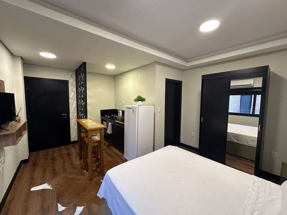 Studio ta' standard għoli fiż-żona ċentrali tal-bini ta' Brooklyn, fil-qalba tal-belt, quddiem il-kwartieri ġenerali, sa 200 m, Market peruzzo, forum, spiżerija, belt, gym, pizzerija ,ħwienet u bars. L-ambjent għandu , b' arja kkundizzjonata, cooker , friġġ, microwave, TV ,blender, toaster, magna tal-kafè, sodda, sufan sodda, gwardarobba, bjankerija tas-sodda, oġġetti tal-kċina u tindif. il-kondominju għandu kamra tal-ħasil, żona gourmet (tariffa ta' $150 USD) iċċekkja d-disponibbiltà.