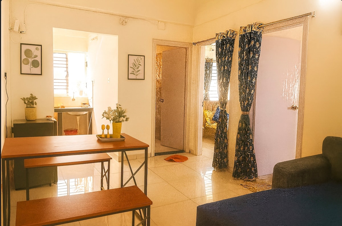 Merħba f' Amber & Jade Stays, id-dar komda tiegħek 'il bogħod mid-dar fil-periferija paċifika ta' Bhubaneswar. Dan 1BHK eleganti jħallat il-kumdità u n-natura ma' żona tas-salott mdawla, kċina mgħammra b' kollox u kamra tas-sodda b' daqs ta' queen. Gawdi minn kumditajiet moderni bħal Wi-Fi, AC u smart TV f' ambjent serju u addattat għall-pets imdawwar bil-ħaxix. Post ideali għall-koppji, għall-vjaġġaturi jew għal min qed jaħdem mid-dar li qed ifittxu post komdu u kwiet. Ħu lil sħabek bil-fer u rrilassa fil-kumdità ġewwa Amber & Jade Stays. 🐾