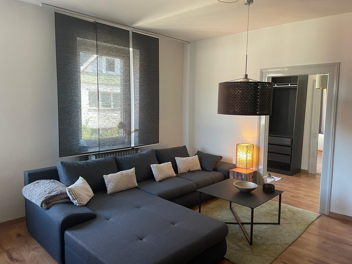 Veduti ta '3 pajjiżi u 4 persuni Appartament modern, miftuħ ta '65m² fiċ-ċentru u 10m² loggia b' veduti sbieħ fuq l-għelieqi tad-dwieli biex tnaqqas ir-ritmu. Taħlita individwali, ġeneruża u unika ta 'moderna u antika! Altbau 1920 & Topsaniert 2014 WiFi, Konus U parkeġġ pubbliku bla ħlas!