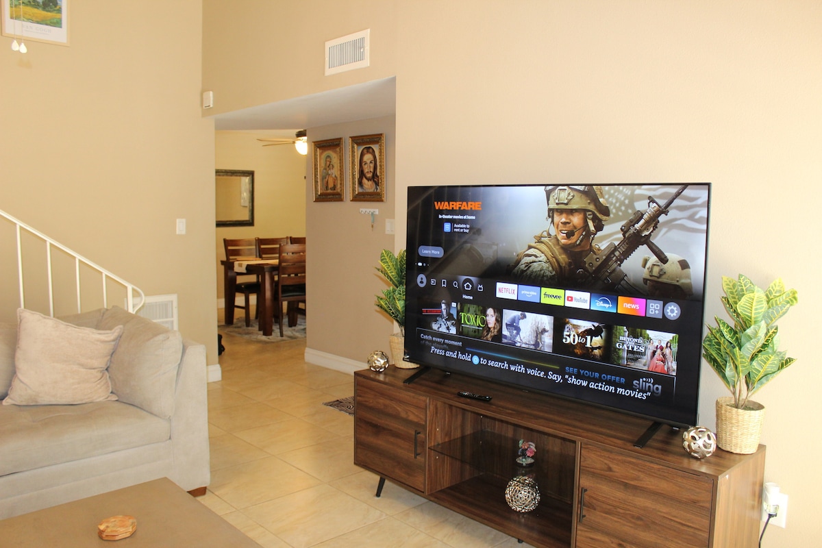 * Listing Ġdid * Dar nadifa moderna b 'appliances ġodda u għamara ġdida. Kwiet u spazjuż 3 BR/2BA, bitħa kbira privata b' pixxina u terrazzin, 2 garaxx tal-karozzi, A/C, kamra għall-ħasil tal-ħwejjeġ, spazju għax-xogħol. WIFI b 'veloċità għolja, 2 - 4K smart tv, kafè u te kumplimentari. Negozju jew pjaċir...din id-dar għandha l-kumditajiet kollha. Inti garantit dar nadifa diżinfettata bi bjankerija u xugamani nodfa. Il-klijenti għandhom aċċess għal parkeġġ f 'garaxx, daħla u triq. Qrib l-awtostrada, ix-xiri, il-korsa tal-golf u r-ristoranti.