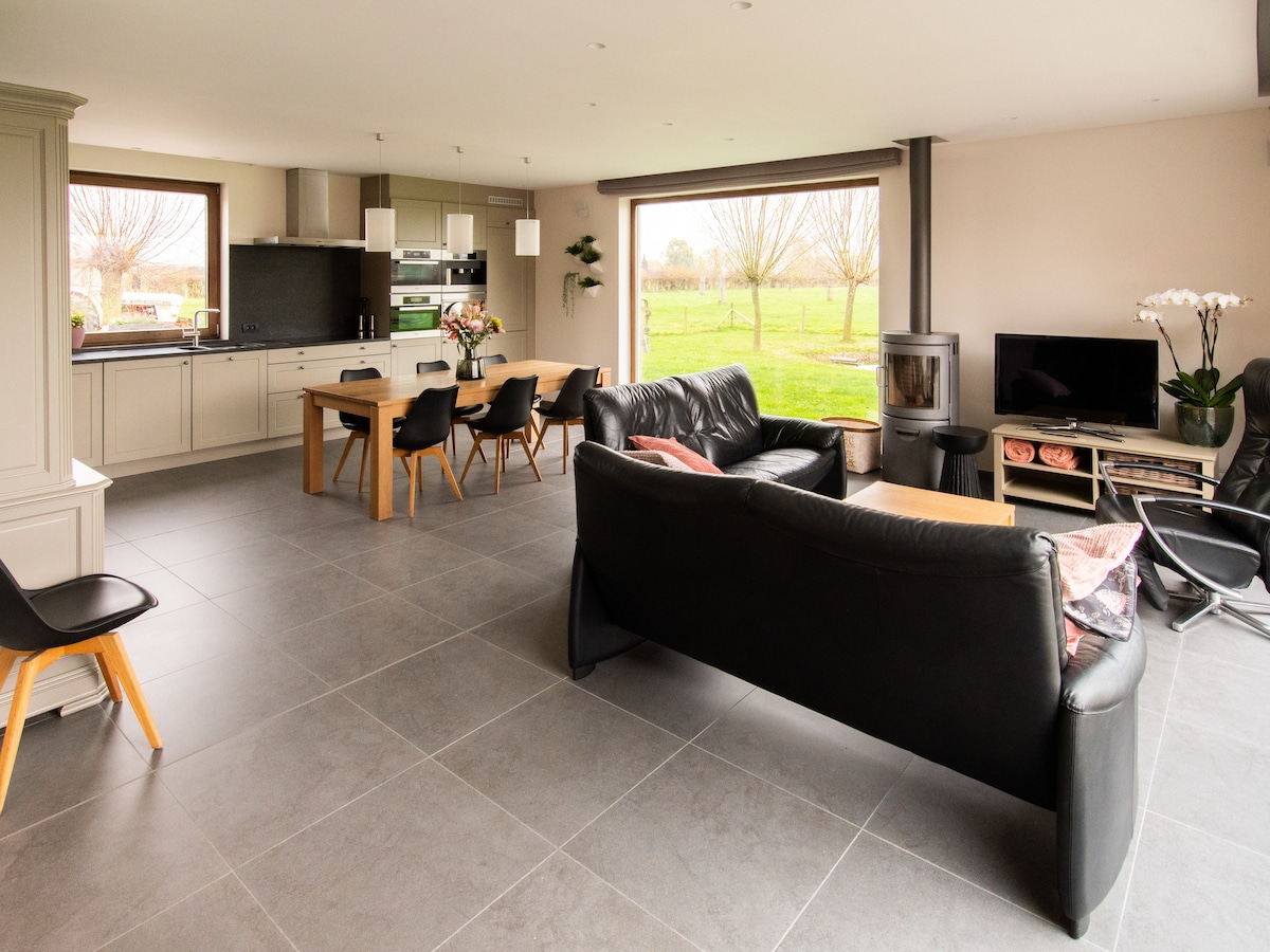 Id-dar kompletament ġdida tagħna bil-kumditajiet moderni kollha hija eleganti u sħuna. Fiċ-ċentru tal-Fjandri tal-Punent, l-attrazzjoni turistika Bruges, Kortrijk, il-kosta Belġjana u Leiestreek huma faċilment aċċessibbli. Iktar dettalji : huyzecarron Il-bjankerija tas-sodda, ix-xugamani u l-bjankerija tal-kċina huma pprovduti u inklużi fil-prezz. Kodiċi tal-Wifi: Kodiċi QR mal-ħajt ħdejn il-kamra tal-ħażna