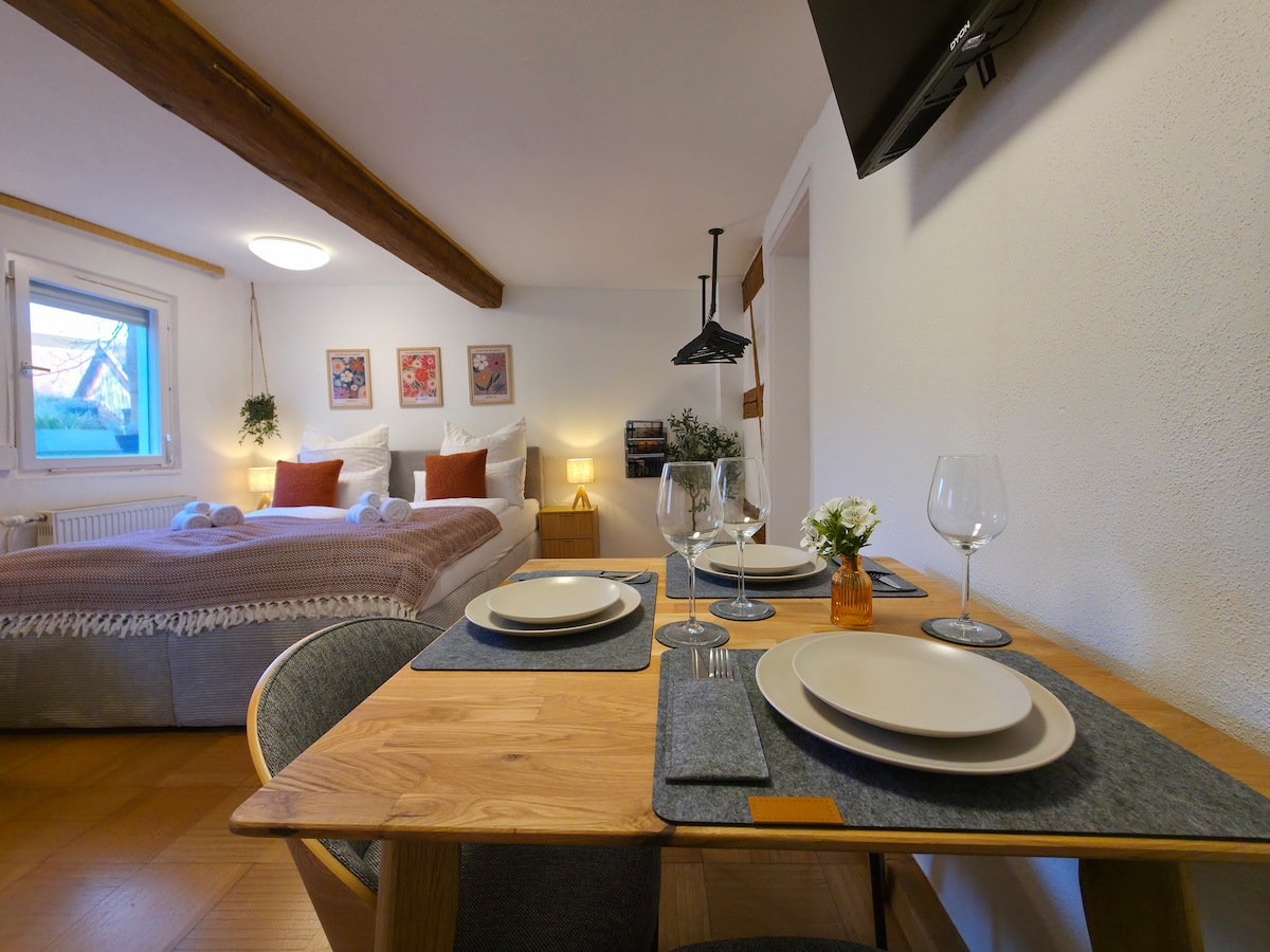 Appartament studio modern, li għadu kif ġie rinnovat, kwiet u mgħammar kompletament f 'post tajjeb ħafna. Barra minn hekk, noffri żewġ roti li jistgħu jintużaw minnek mingħajr ħlas. Il-kamra tal-banju hija kbira u l-kċina hija separata miż-żona tal-irqad. Fil-mixi huwa biss madwar 15-il minuta lejn il-belt il-qadima, inti tista 'timxi rilassat tul ix-xmara. Hemm parkeġġ bla ħlas. Fil-kċina żgħira mgħammra b 'kollox hemm żewġ platti kif ukoll microwave b' funzjoni ta 'ħami.