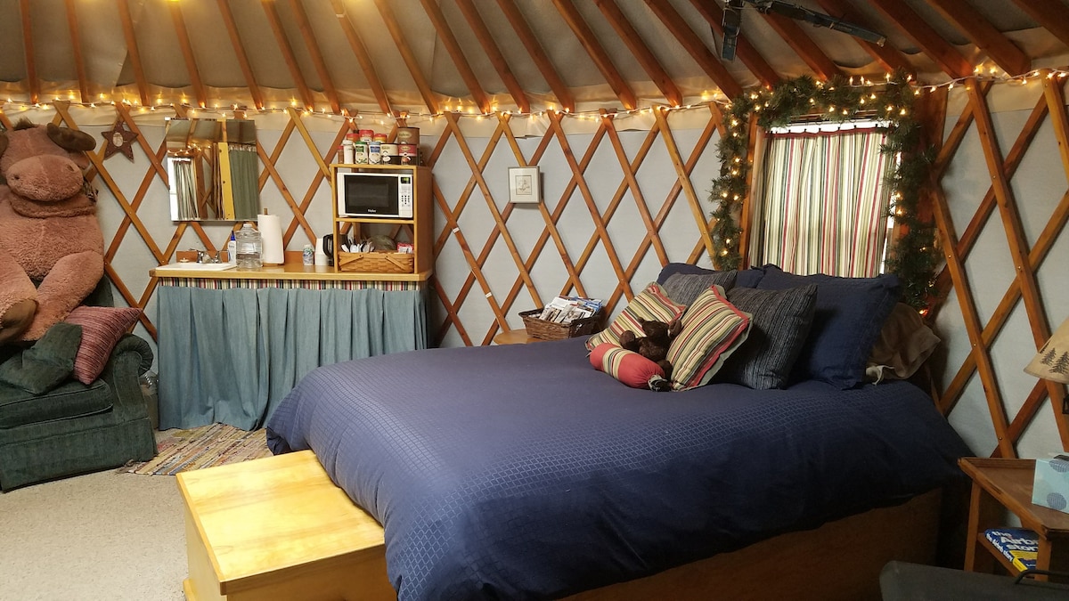 Dan IL-YURT sabiħ ħafna, magħmul mis-sid, bl-idejn, kompletament mgħammar b 'veduti tal-muntanji, nżul ix-xemx spettakolari, u bi stilla li tħares min-nar, se tkun lest għall-iljieli l-kbar tal-irqad snuggled taħt il-kumdità minfuħa fuq is-sodda tar-reġina komda. Inti ser tkun mistrieħa sew żgur! Hemm friġġ żgħira u varjetà ta 'kafè/te/kawkaw u trattamenti, flimkien ma' xi prodotti tal-karta, ipprovduti wkoll. Awesome tikseb bogħod jew tieqaf tul tiegħek mod, jew eżatt come & play!