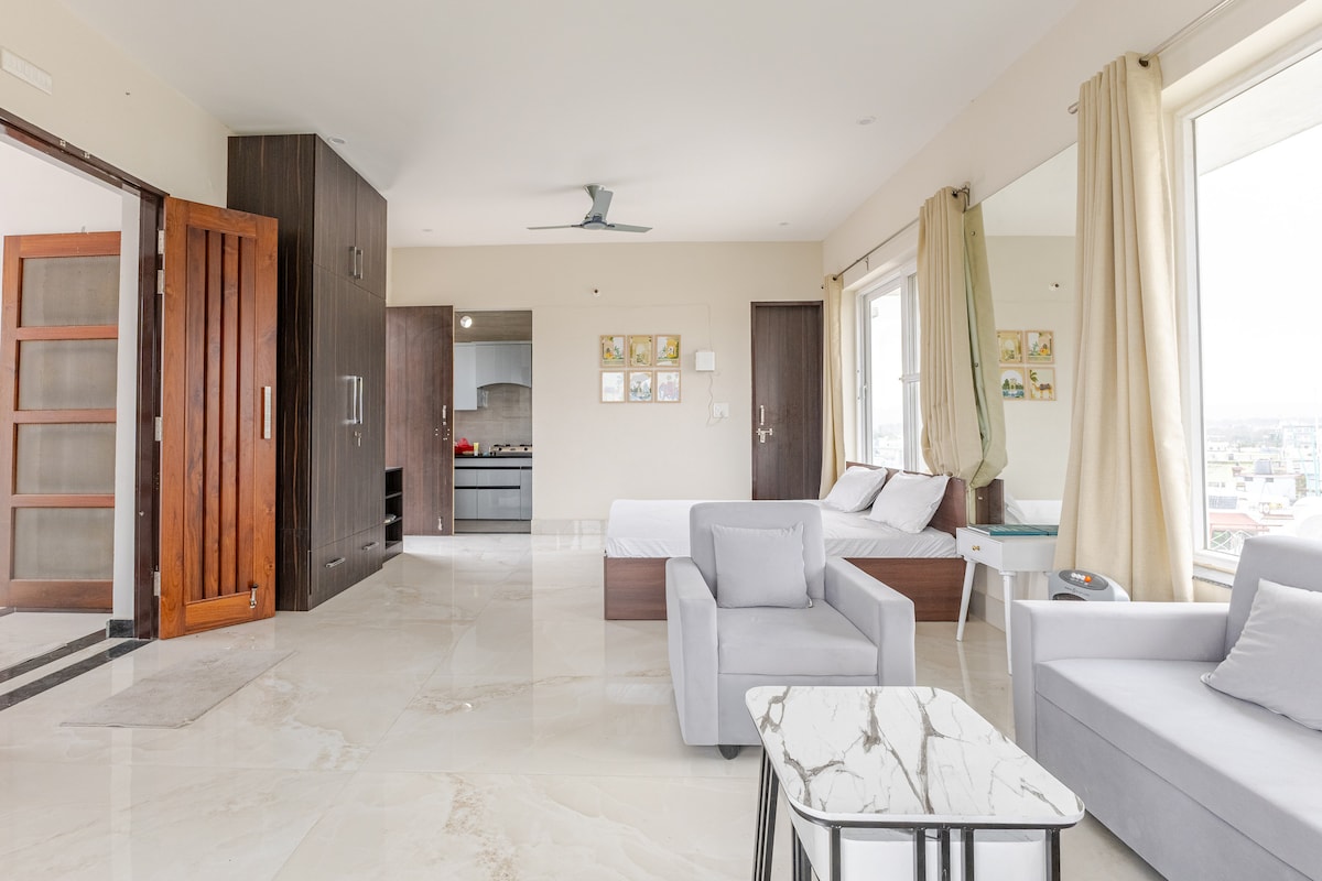Little Sparrow Home Stay -littlesparrowhomestay mdawra b' Muntanji. Terrazzin miftuħ biex toqgħod bilqiegħda u tgawdi l-Paċi. Tista 'wkoll tagħmel Yoga kmieni f' Morning Sunrise. Tista 'wkoll tara l-qamar jogħla jekk dan iseħħ fil-jiem ta' żjara tiegħek. Kamra Kbira Spazjuża b 'sodda ta' daqs Super king (8' *7.'), AC, TV, WiFI, Parkeġġ, Lift, Inverter backup għad-dawl tal-kamra, Fan u TV. Il-kċina u l-għodda huma disponibbli wkoll jekk tixtieq issajjar. Il-kumditajiet kollha inklużi fil-kamra tas-sodda u l-banju. *Strettament LE Duħħan fil-Kamra*.