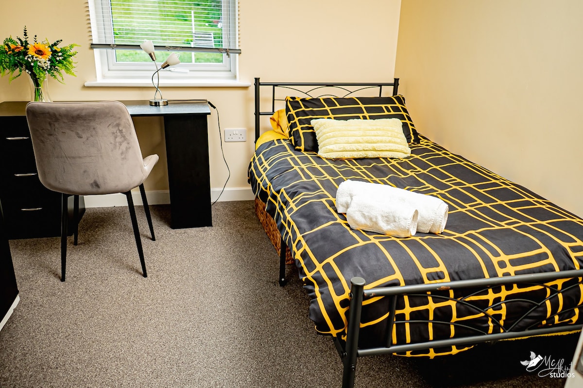 Anness awtonomu mehmuż mal-bungalow ewlieni. Ideali għall-ivvjaġġar fuq xogħol, koppji u familji żgħar. Qrib M18/A1 u 8 minuti 'l bogħod mill-YWP. Aħna ninsabu 'l bogħod bil-mixi mil-Lag Y, 4 mili' l bogħod mill-Kors tat-Tiġrijiet u mill-Istadju tal-Enerġija Ekoloġika. Għandek aċċess privat biex tiftaħ l-għixien/l-ikel/il-kċina żgħira. Kamra tas-sodda doppja/en-suite. Futon/sufan doppju fis-salott. (bjankerija tas-sodda pprovduta). It-tieni WC barra miż-żona ewlenija tas-salott. Ġnien privat b' postijiet bilqiegħda. Sky TV, Sport u Ċinema. Parkeġġ abbundanti, CCTV fuq garaxx/sewqan.
