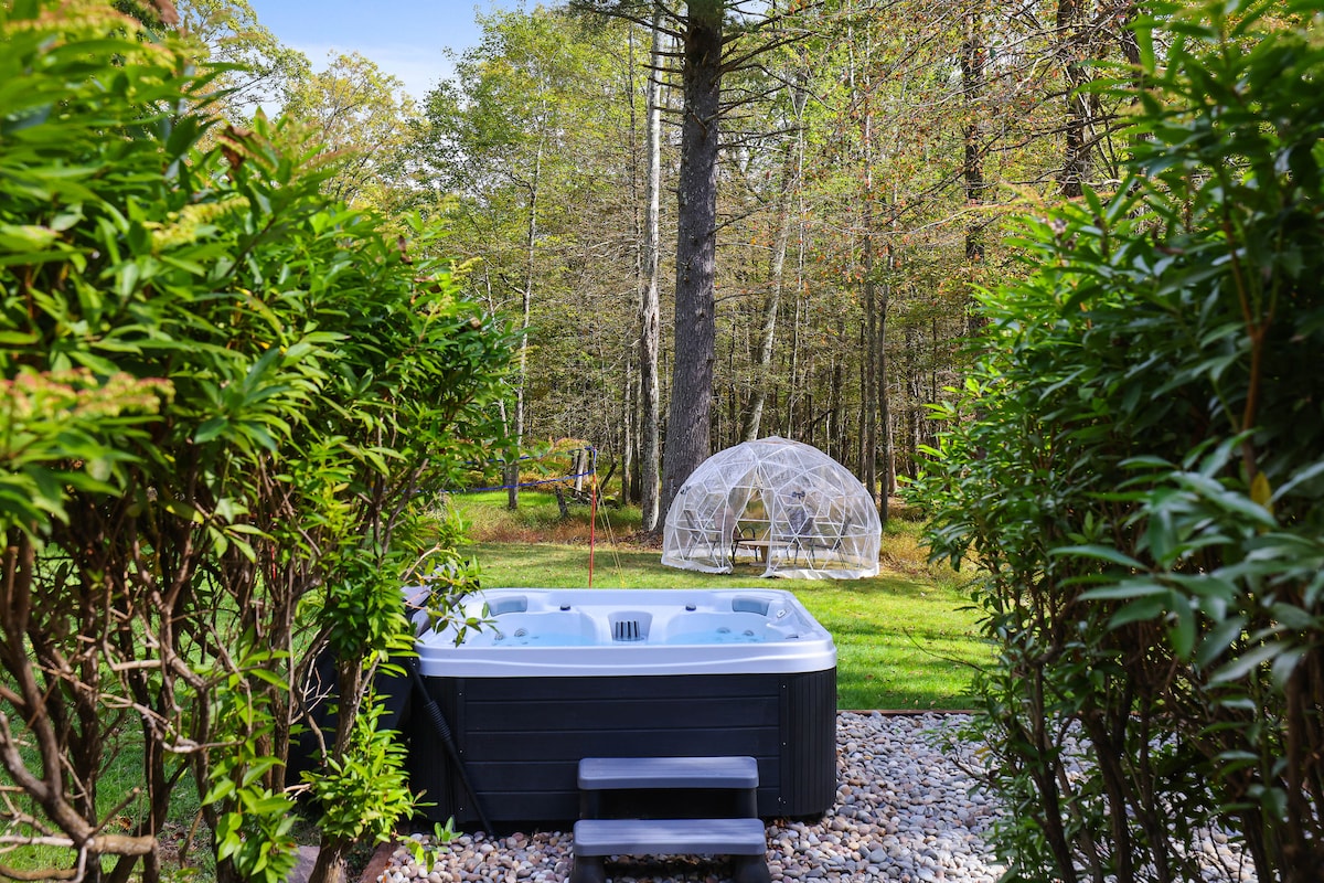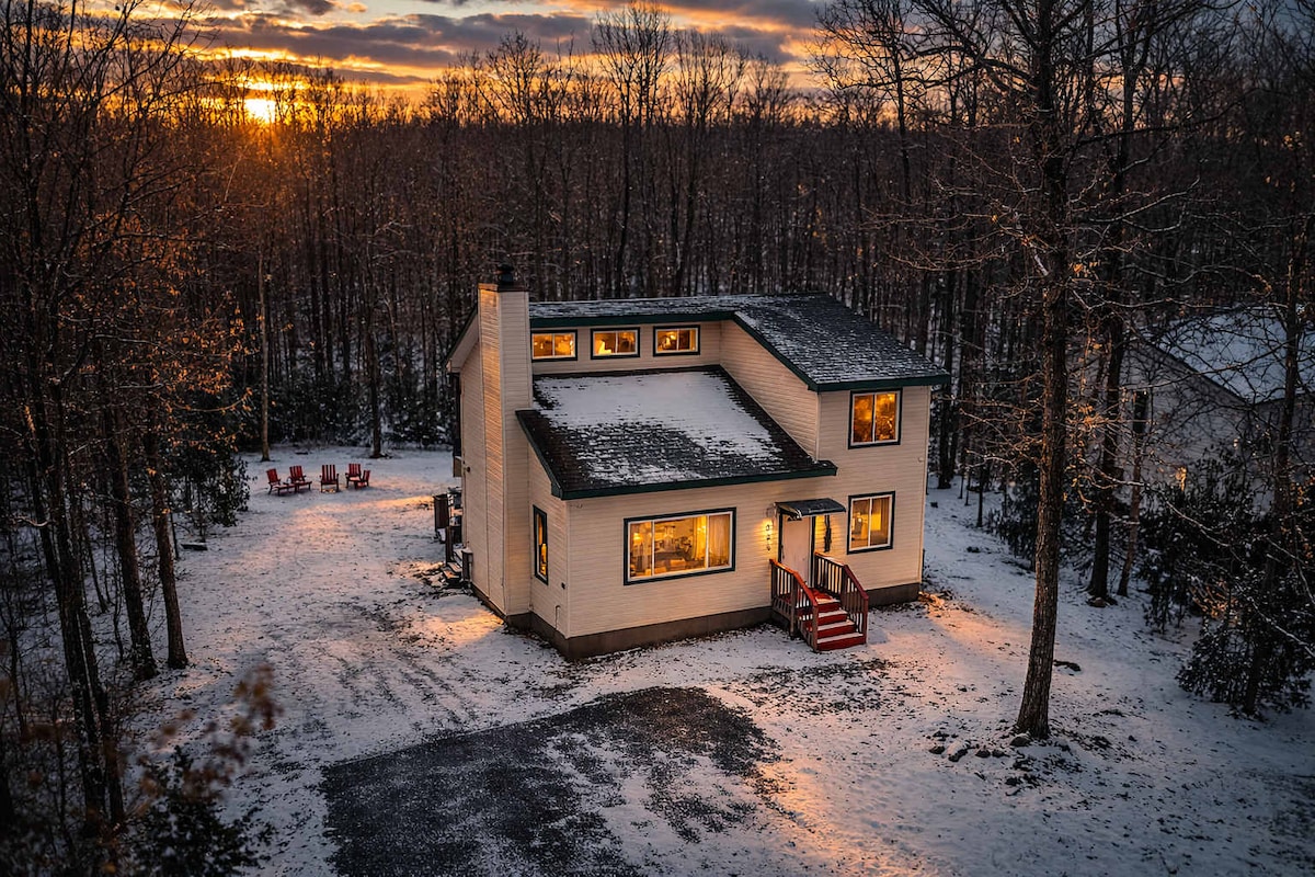 Il-vibrazzjonijiet tal-kabina u l-affarijiet lussużi jagħmlu ⇛l-Cottage in the Woods⇚ post mill-isbaħ għall-klijenti tagħna! Ejja agħmlu vjaġġ fil-Cottage li jinsab fil-fond tal-foresta f'żona kwieta u serena. Ħossok eqreb tan-natura int u tara ċ-ċriev jiġru u tgawdi l-veduti tal-foresta mis-sunroom li tista' tintuża matul l-erba' staġuni tas-sena. Gawdi n-nirien ta' filgħaxija ħdejn il-firepit ma' sħabek u mal-familja. *YoutubeTV inkluż* Aħna nistiednuk fil-Cottage tagħna b'atmosfera ta' kabina u dettalji lussużi. 90 minuta 'l bogħod minn New York City u sagħtejn 'il bogħod minn Philadelphia. Merħba fil-Muntanji Pocono!