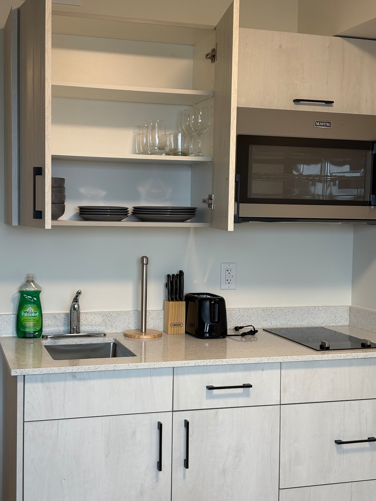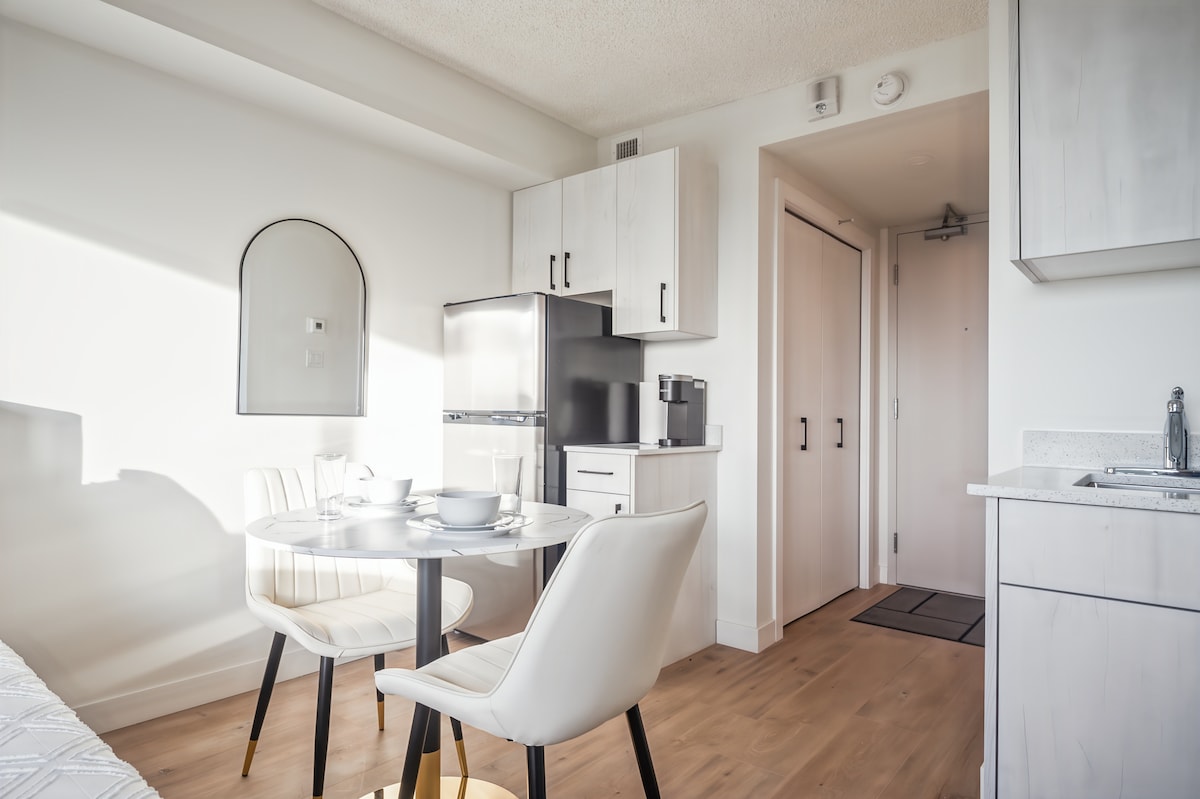 Din hija suite ta 'baċellerat f' bini żgħir ta' appartamenti. Il-bini jinsab direttament wara l-kampus Grant MacEwan li huwa passi 'l bogħod minn Rogers Place, is-sistema LRT (trasport pubbliku) u l-qalba taċ-ċentru. Ideali għal dawk li jattendu Rogers Place għal kunċerti jew Grant MacEwan għal studji/konferenzi! Hija wkoll mixja qasira ta' 15-20 minuta 'l bogħod mill-Isptar Irjali Alexandra li jagħmilha għażla tajba għall-istudenti mediċi jew NAIT.
