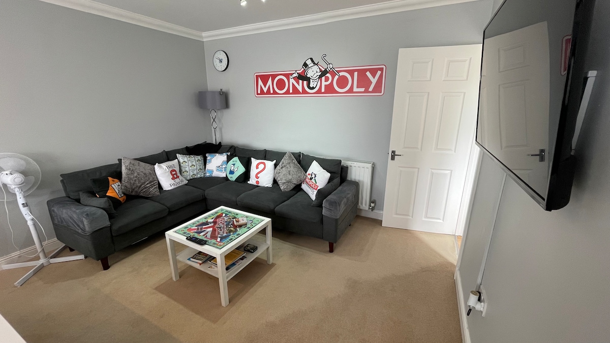 Il-Post tal-Monopolju huwa propjetà kbira b '4 ikmamar tas-sodda bbażata fuq tema tal-logħob Monopolju. B '4 "Stazzjonijiet tax-Xogħol" iddedikati, internet veloċi ħafna u qrib it-trasport pubbliku, huwa ideali meta żżur Basingstoke għax-xogħol/pjaċir. Salott komdu, kċina kbira b 'żona tal-ikel u kmamar tas-sodda spazjużi. Kamra tas-sodda 1 - sodda doppja, Kamra tas-sodda 2 - żewġ persuni waħedhom, kmamar tas-sodda 3 u 4 għandhom sodod singoli. Il-kmamar tas-sodda kollha u kull "stazzjon" tax-xogħol għandhom potenza li jappoġġjaw plaggs multipli, konnessjonijiet tal-USB u ċċarġjar bla fili.