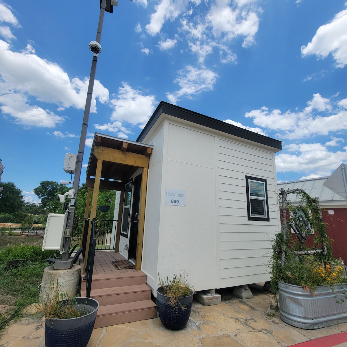 Irrilassa f' din il-kabina moderna fejn in-natura tiltaqa' mal-kumdità. Gawdi esperjenza interattiva ma' annimali tar-razzett amikevoli li jixtiequ l-pets u t-trattamenti. Duq il-veduti tal-għadira serra, il-baqar li jirgħu u ż-żwiemel. Skopri l-mogħdijiet fuq art magħluqa. Blinds li jiffiltraw id-dawl, AC u Starlink WiFi. Inbniet fl-2023. Aġġornament 7/7/25. Għandna qżieqeż, mogħoż tat-trabi u għoġġiela bħalissa sal-aħħar ta' Awwissu. Qrib Circuit of the Americas, Bastrop, Austin Airport u Smithville.