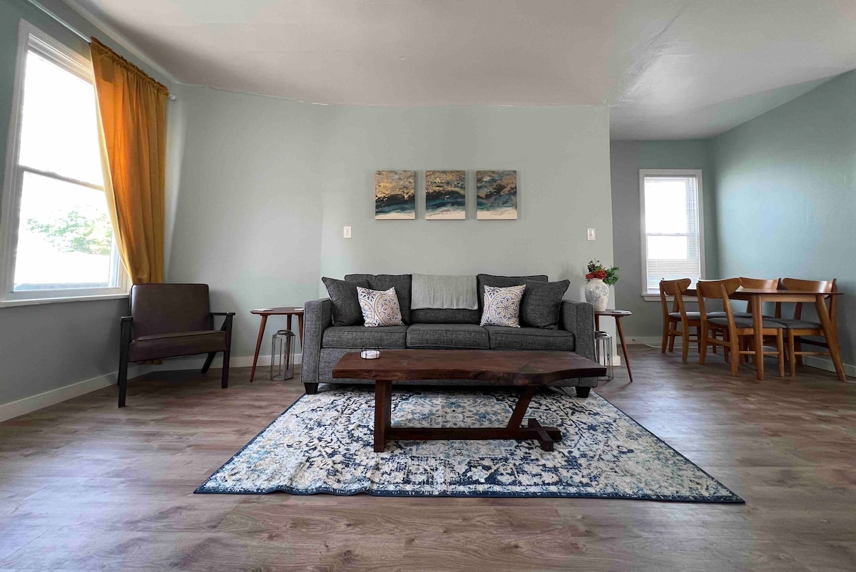 Perfectly located in Milwaukee’s eclectic Bay View 4 blocks from the lake. Minutes from downtown, Summerfest, art museum, etc. You’ll have the entire second floor of this sunny duplex. The space is open concept - 1 bed with a King Casper mattresses, a bright kitchen with tons of space, a stylish living room with art throughout, and an office (with an air mattress). Fenced-in back yard that's great for pets and chill around the outdoor table for optimal hangs and BBQs.