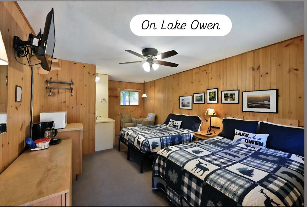 Gawdi żjara rilassanti u addattata għall-familji fuq ix-xatt tal-Lag Owen. Ir-resort tal-familja tagħna jinsab fit-tarf tan-nofsinhar tal-lag, biss erba' mili 'l bogħod mill-Cable. Il-Lag Owen għandu ilmijiet ċari kristall u huwa mniżżel bħala l-iktar wieħed b' saħħtu mill-15,000 lag ta' Wisconsin. Il-Foresta Nazzjonali Chequamegon-Nicolet tinsab madwar il-biċċa l-kbira tal-lag, u tillimita l-iżvilupp tal-kosta u toffri l-aqwa sajd u divertiment rikreattiv.