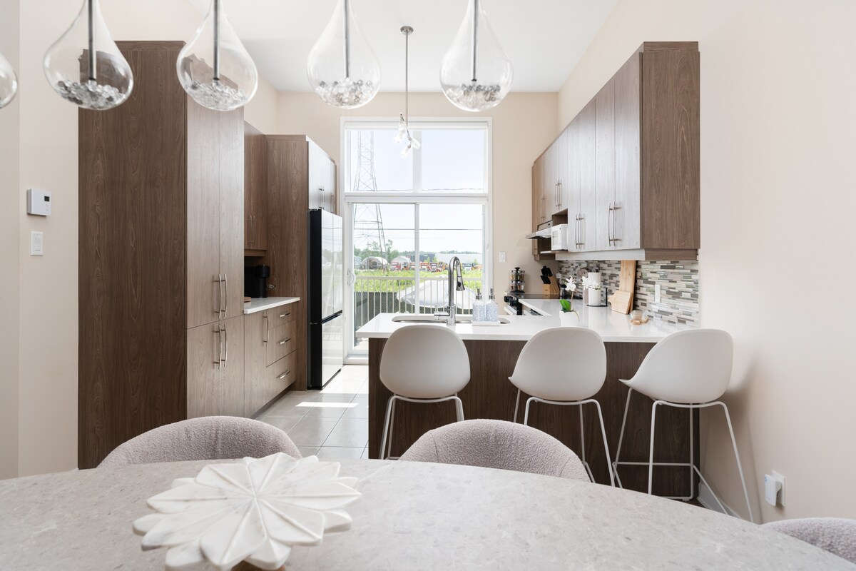 Spazju spazjuż u uniku f' dar moderna lussuża, f' minuti 'l bogħod minn Montreal. Viċinat Paċifiku qrib in-naħa ta 'quddiem tal-ilma u l-belt turistika ta' St. Anne de Bellevue. L-attrazzjonijiet fil-qrib jinkludu Parc Historique de la Pointe-du-Moulin (5 min) u Quinn Farm (5 min) Binarji tal-mixi u mogħdijiet għall-mixi qrib il-propjetà. Pixxina sabiħa, terrazzin u barbeque disponibbli għall-klijenti. Kamra tal-yoga mgħammra b' kollox.