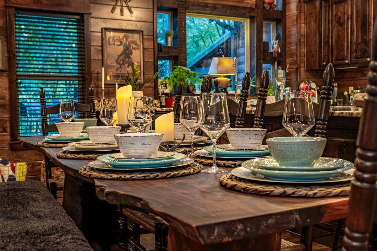 Up Chic Creek huwa djamant ta 'ħafna facets. Waħda mill-aqwa 10% ta' 2 kabini tal-kamra tas-sodda fl-2022! Din il-kamra tas-sodda chic, lussuża 2 flimkien ma 'loft, kabina tal-banju 2.5 hija mżejna b' togħma u ekletikament imżejna għal żjara divertenti u li tagħmel il-memorja! Jinsab fuq lott ifforestat b 'kurva pittoreska, u toqba tal-għawm fonda biżżejjed biex tieħu dunk f' dawk is-sajf sħan. B' 2 ikmamar tas-sodda king u futon fil-loft, se jorqdu mhux iktar minn 6 persuni. Issa aġġornat bil-purtieri!