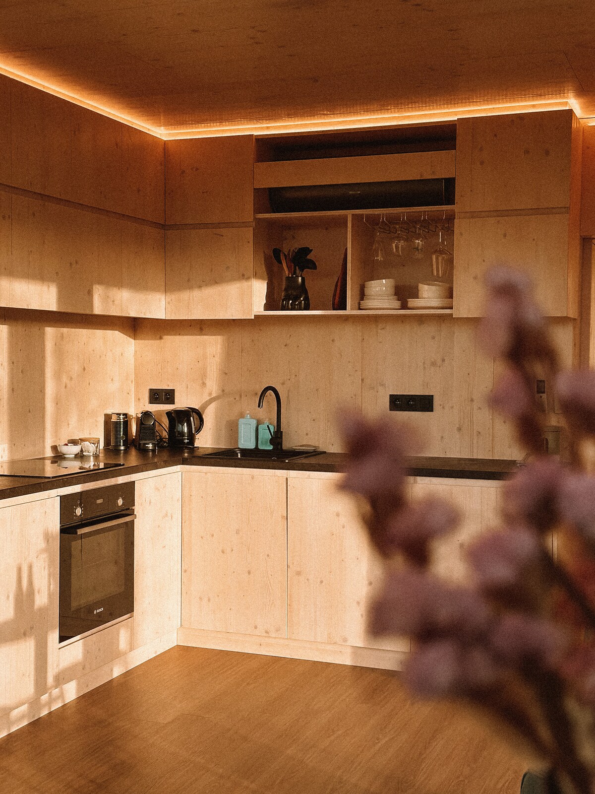 Unwind at this serene, secluded escape. Our Steel House, elevated on stilts, offers privacy and a rare connection with nature. Relax in the sauna for a peaceful retreat. At its highest point over the water, a sitting area with a 360º wood stove keeps you cozy. Enjoy movie nights with a beamer and speaker for extra entertainment. Outside, a spacious wooden deck with a sun lounger, outdoor dining table, BBQ, pizza oven, and a stunning lake view awaits. For dog owners: the property is fenced😊