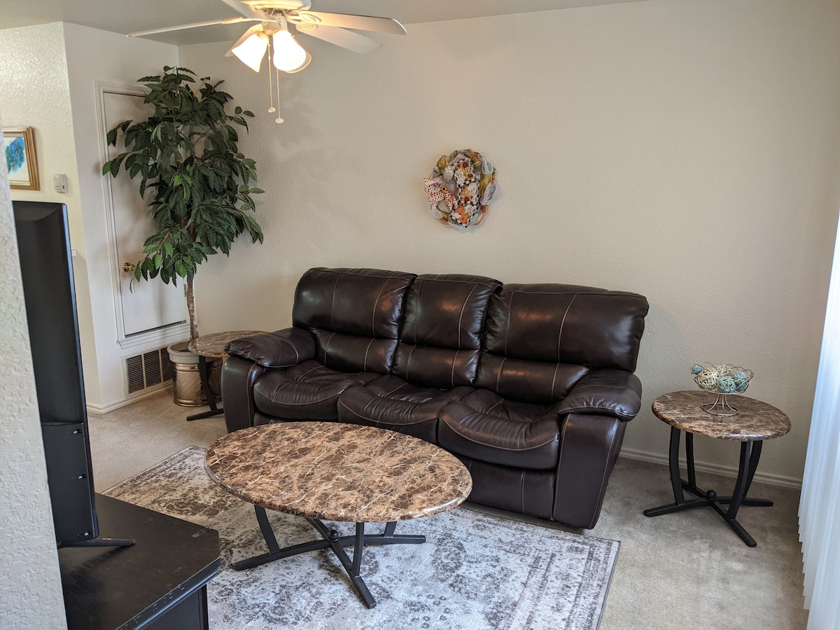 Have fun with the whole family at this stylish place. Complete with electric fireplace, 2 smart TVs and beautiful decor. Pet-friendly with fenced backyard. This is a beautiful 2-bedroom townhouse. Unit B, one of 4 units in a quadplex. It has 2 bedrooms and a bath upstairs and a half bath downstairs. There is a 40" smart tv in the living room and a 32" smart tv in the master bedroom. Fenced backyard. Self check-in info given after booking. Ask about our seasonal discounts.
