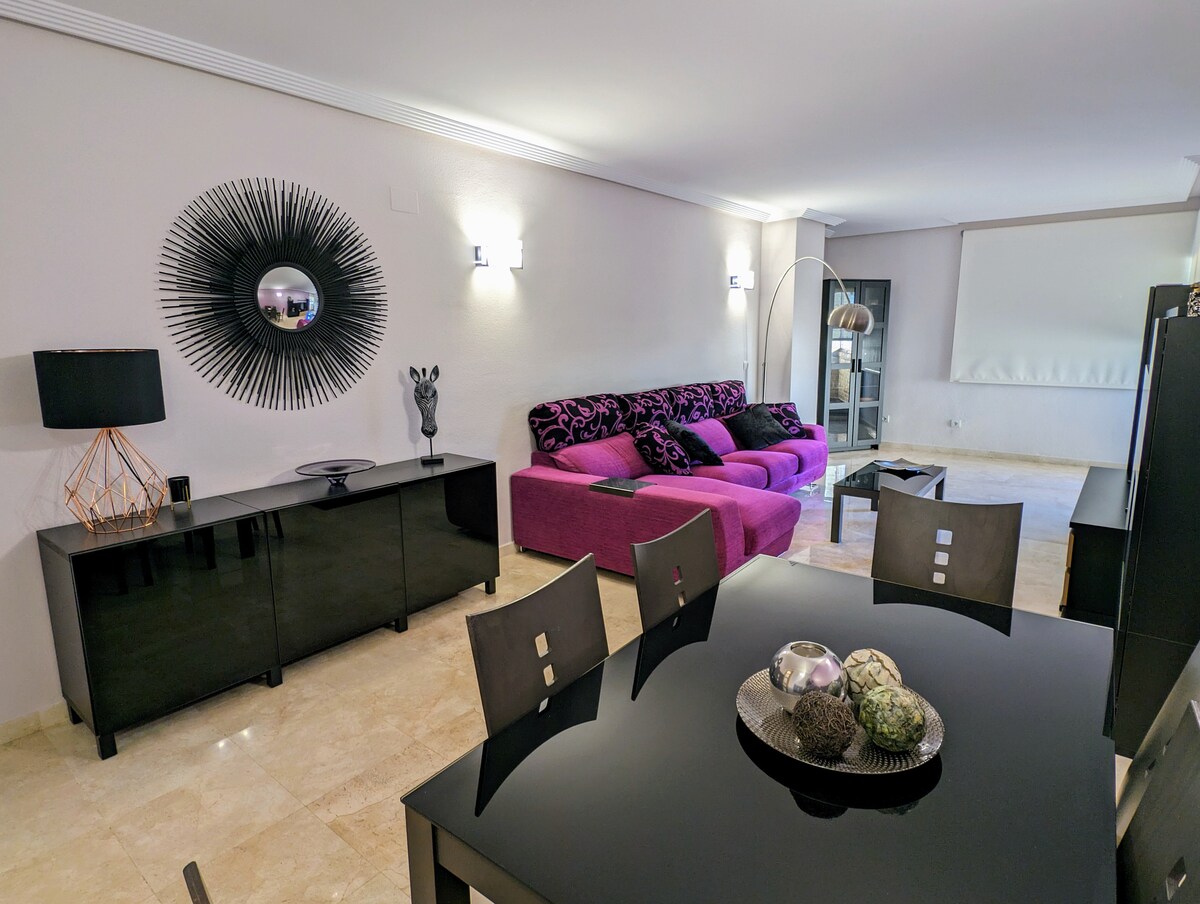Dan l-appartament assolutament ġdid lussuż jinsab 100 m mill-baħar fl-iktar enklavi inkredibbli Torres b 'eucalyptus u siġar tal-palm li jipprovdu dell fuq il-bajja. Fuq terrazzin kbir tista 'tgawdi veduti spettakolari tal-baħar u tal-muntanji. Din l-urbanizzazzjoni mill-aqwa għandha żewġ pixxini miftuħa għall-istaġun, żona TAL-ISPA: jacuzzi sħun, counter current, sawna, hamam, gym fuq barra, park tal-logħob għat-tfal. huwa rakkomandat li jkollok karozza għal aċċess faċli għas-servizzi ġewwa Villiayojosa u Benidorm.