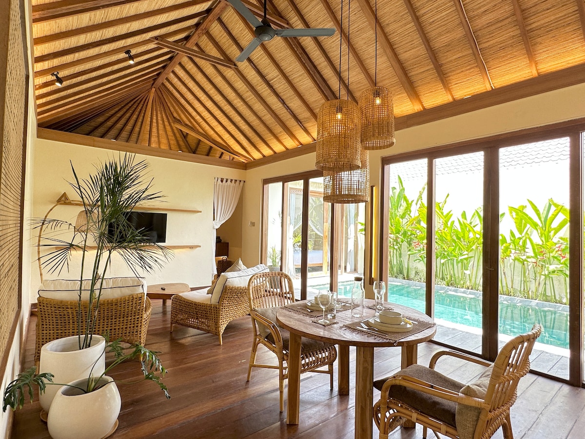 Ħarba lejn il-villa Brand New 1 BR tagħna b' pixxina privata f' post mill-aqwa fil-qalba ta' Canggu, Din hija l-villa perfetta għall-koppji jew għall-vjaġġaturi waħedhom li jħobbu jiskopru post famuż f' Canggu. 3-5 mixi biss sa Ristorant, Ħanut, Gym, CoWorking, Pilates, kafetteriji u Bars mill-aqwa. Ftit minuti 'l bogħod mill-bajjiet famużi bħal Nelayan, Batu Bolong, Canggu Beach, Din il-villa għandha sodda king lussuża, kamra tal-banju ensuite, kċina, pixxina, salott u spazji tal-għajxien miftuħa biex tirrilassa qrib il-pixxina privata