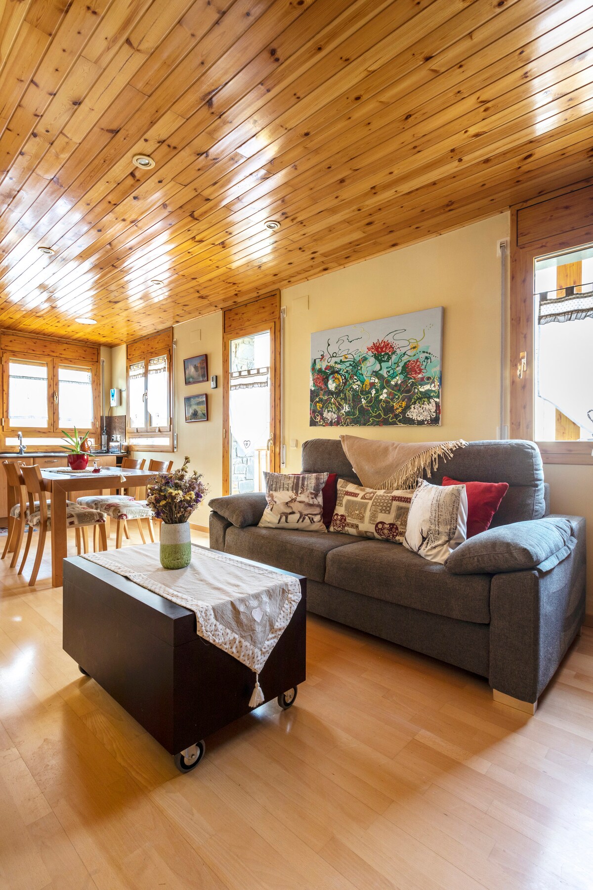 Luminoso dúplex abuhardillado en el centro de Vielha. Con plaza de PARKING y PISCINA en Julio y Agosto. Con orientación sur y unas vistas despejadas. Cálidos acabados de madera. Espacio preparado para un máximo de 4 personas (cama doble + sofá cama doble) ideal para parejas, familias o pequeños grupos que quieran disfrutar de la montaña, el senderismo, las pistas de esquí o la gastronomía del Valle. No olvides que tu mascota es bienvenida como uno más de la familia.