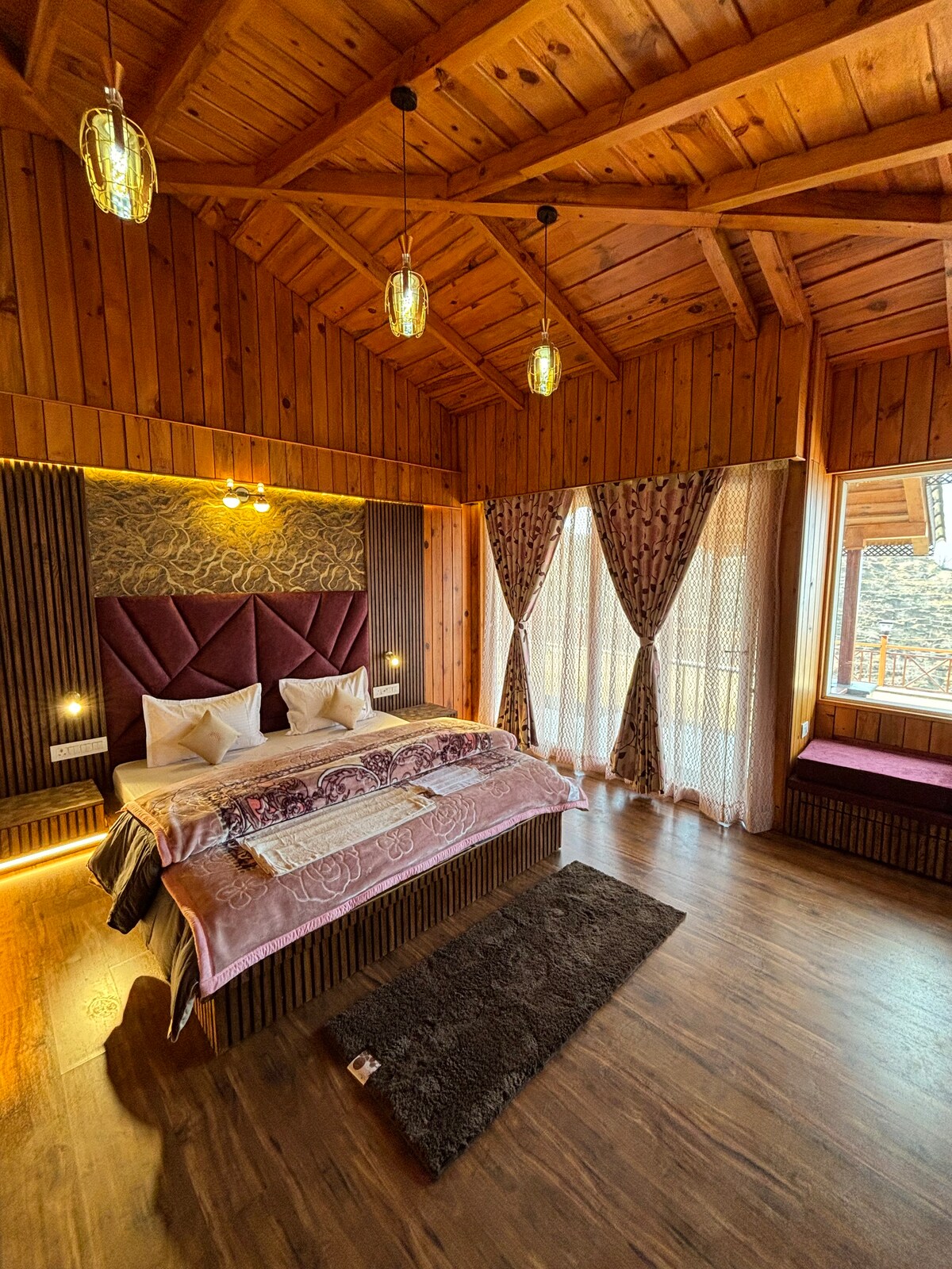Welcome to Pinewood Chalet at Rumi's Mountain Sunset, Bhimtal! Perfect for nature and adventure sports seekers alike, the property is designed to be self-sufficient for those seeking to chill out and be pampered by nature and food. ➤ Just 2-3km from both Naukuchiatal and Bhimtal lakes! ★ Mountain Views ★ 1 bed 1 bath suite with Balcony ( shared : 1 Living, 1 Kitchen/utility) ★ Private Covered Garden (living area) ★ Ideal for Couples ➤ Suite designed & furnished by the Old Monk of Nainital