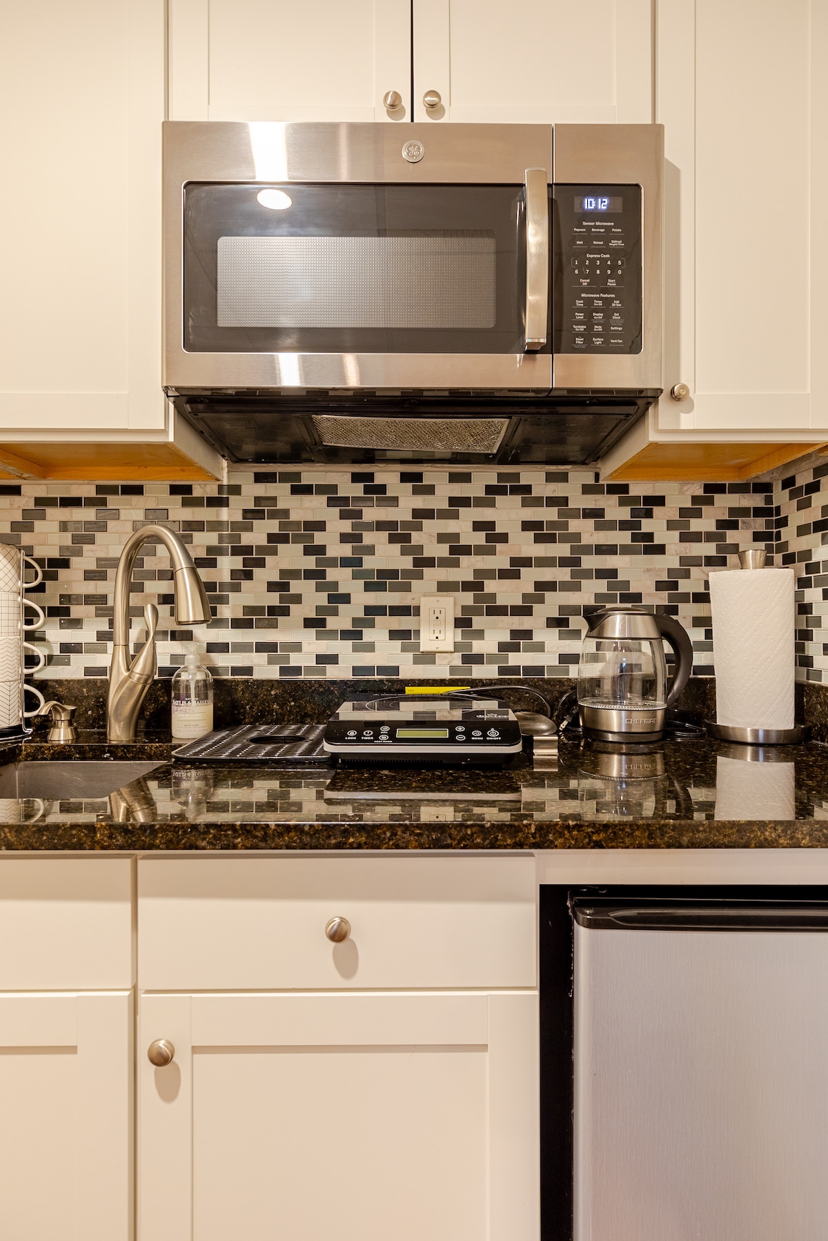 Irrilassa u rrilassa fil-kamra komda tiegħek b 'daħla privata mit-terrazzin tiegħek. Gawdi t-TV tiegħek ta' 40 pulzier mis-sodda sħiħa u komda. Għandek bżonn ftit spazju biex tagħmel xi xogħol? Għandek mejda tal-kafè u siġġijiet sbieħ fil-kamra tiegħek u 'l barra mit-terrazzin tiegħek. Il-kċina tiegħek għandha sink żgħir, friġġ tad-dormitorju, microwave, hot pot, magna tal-kafè drip/Keurig, platti u armarji għall-ħażna. Gawdi xugamani bojod rotob u rotob. Għandek ukoll ħadida tal-mogħdija u mejda għall-mogħdija.