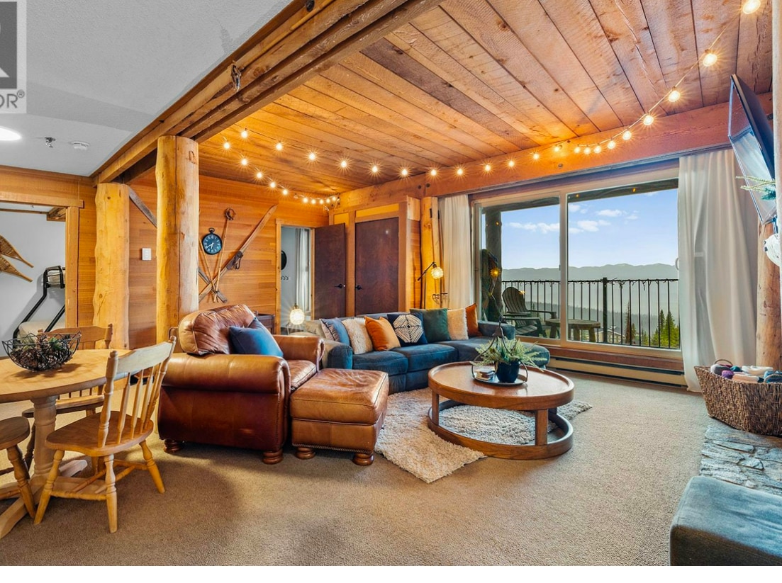 Cozy and renovated spacious condo with an amazing view of the Monashee Mountains w/ Private in unit Dry Sauna. Located in a very family friendly building which has easy ski in/out access and is a short 5 minute walk to the village. Will sleep up to 5 people with a double over Queen bunk, pull out double sofa bed and single day bed. The unit has been decorated and renovated and has a real cabin/chalet feel complete with log pillars and beams. The unit is very spacious with over 750sq