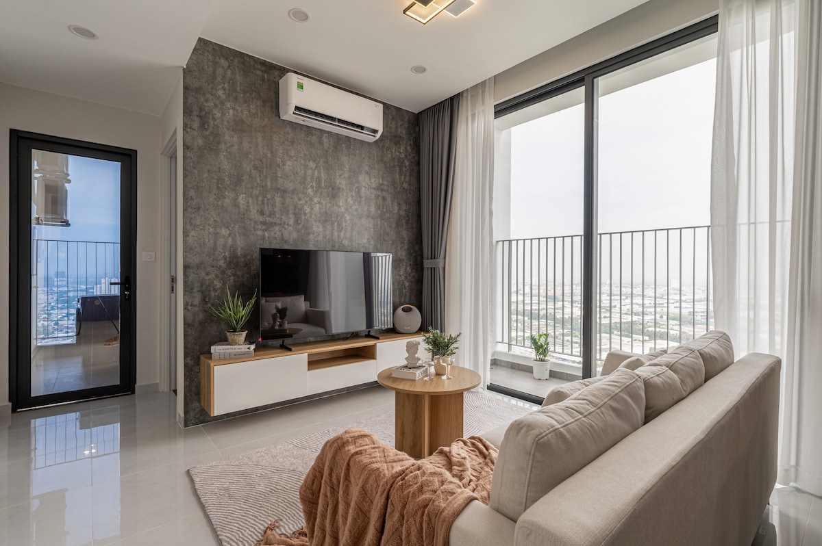Merħba fl-appartament modern b'żewġt ikmamar tas-sodda ġewwa Midori Park The Glory, fil-qalba tal-Belt il-Ġdida ta' Binh Duong. Dan l-appartament li jinsab f'wieħed mill-ogħla sulari huwa spazjuż u arjuż u għandu gallarija b'veduti tal-pixxina u tal-qorti tat-tennis — spazju kwiet mimli dawl naturali. Aeon Mall Binh Duong Canary jinsab eżatt quddiem il-bieb tal-bini, ftit passi 'l bogħod minn fejn tista' tixtri, tiekol jew tara film. Post ideali għall-familji, għal min qed jivvjaġġa fuq xogħol u għal min qed jivvjaġġa fuq btala.