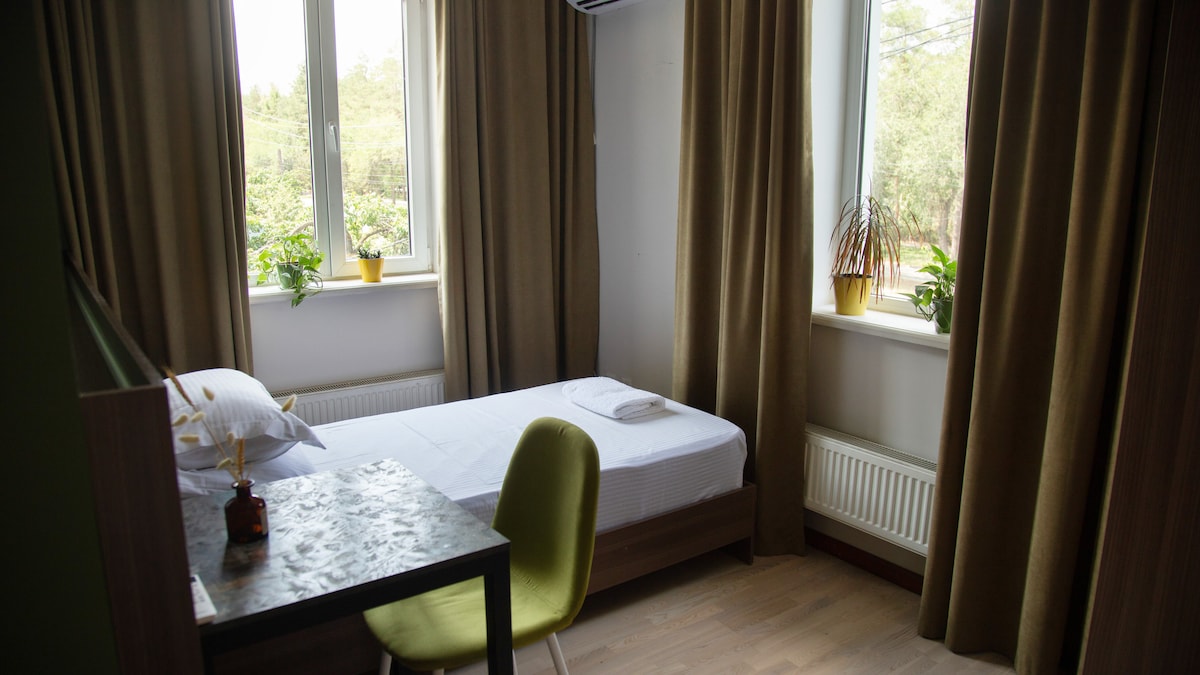 Il-kamra komda tinsab fi 15-il minuta bil-mixi lejn iċ-ċentru tal-belt. L-aħjar post għat-turiżmu tal-belt u għax-xogħol. Hemm ħafna ristoranti, ċentru tal-coorking u swieq. 30 metru sal-waqfa tax-xarabank. Sodod tad-daqs tal-kumdità u saqqu artab se jiggarantixxu l-irqad tajjeb tiegħek.