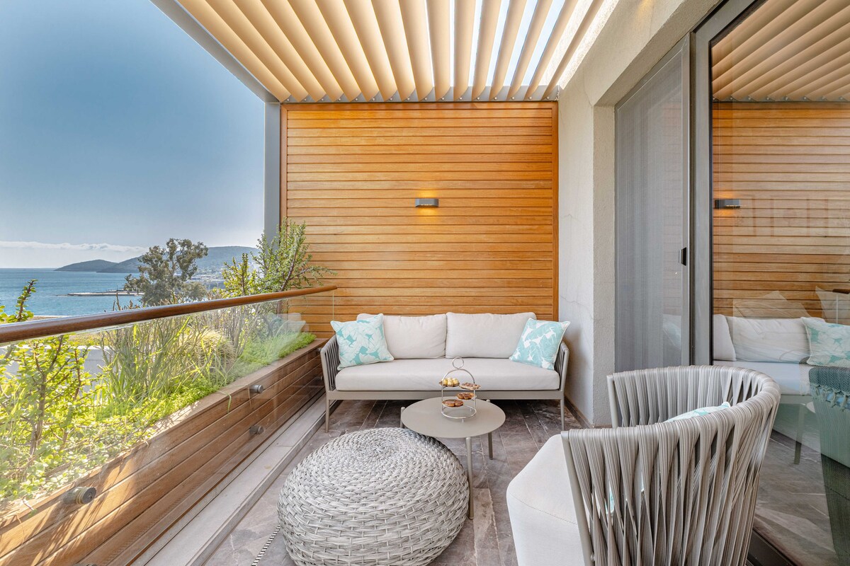 A lavishly designed 2-ensiute bedroom flat located in the prestigious 5-star seafront Le Chic Residences Bodrum, offering breathtaking sea views and an exceptional luxury experience. This is a privately owned residence located within a prestigious hotel & residence concept resort. The hotel operates from mid-May through the end of October. During the hotel’s operational season, guests enjoy full complimentary access to all hotel amenities.