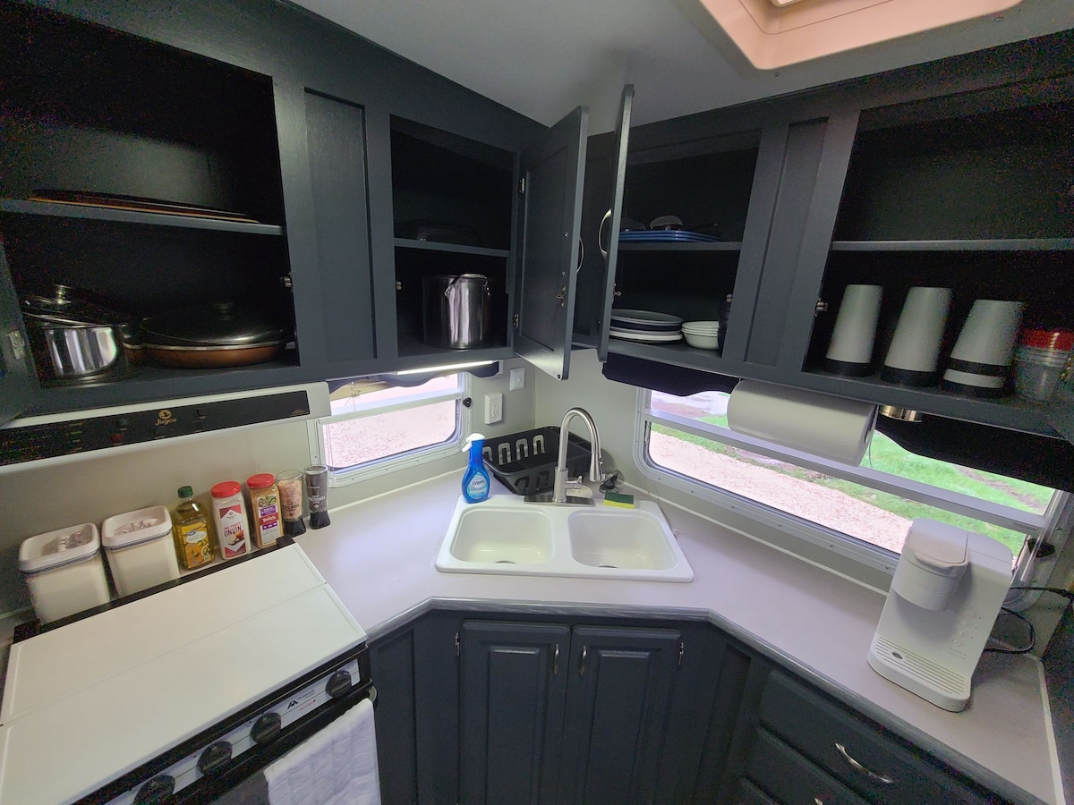Qiegħda fost il-Black Hills mill-isbaħ. Il-kamper tagħna jinsab perfettament bejn l-eċitament ta' Sturgis u l-faxxinu ta' Rapid City, li jagħmilha l-bażi ideali għall-esplorazzjoni tal-Black Hills. * Kċina mgħammra kompletament * Kamra tal-banju privata * Wi-Fi ċar biex iżżomm konnessjoni * Kif tirrilassa t-TVs għal ħin ta' waqfien * Grill fuq barra għall-BBQs delizzjużi Kemm jekk qed tfittex avventura kif ukoll jekk qed tirrilassa, il-kamper tagħna huwa l-ħrib perfett tiegħek.