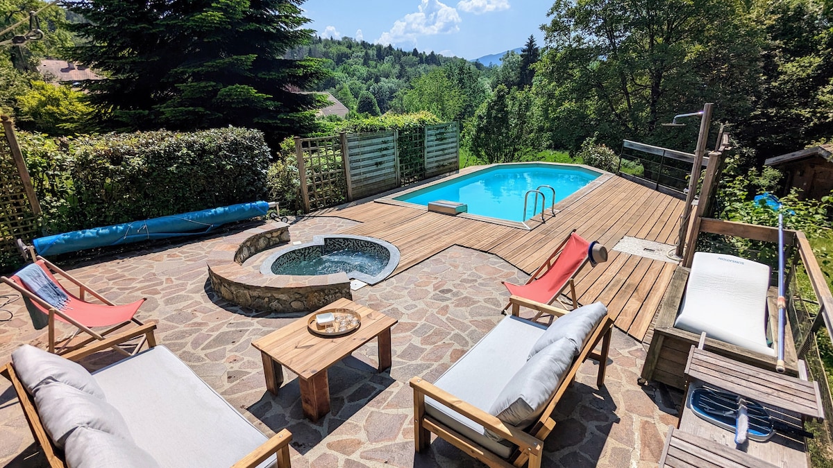 Villa b'Pixxina Msaħħna u Spa Privata qrib Annecy. Agħti rigal lilek innifsek b’vaganza rilassanti f’din il-villa ta’ 105 m² f’ambjent kwiet ftit minuti biss bogħod minn Annecy. Gawdi l-pixxina msaħħna u l-ispa privata matul is-sena kollha — post ideali għal vaganza ta’ benesseri, tmiem il-ġimgħa romantiku jew btala mal-familja mdawra bil-muntanji. Din id-dar mdawla u kennija b’ġnien privat tinsab bejn il-lag u r-resorts tal-iskijar u hija l-post ideali biex terġa’ tiċċarġja fi kwalunkwe staġun.
