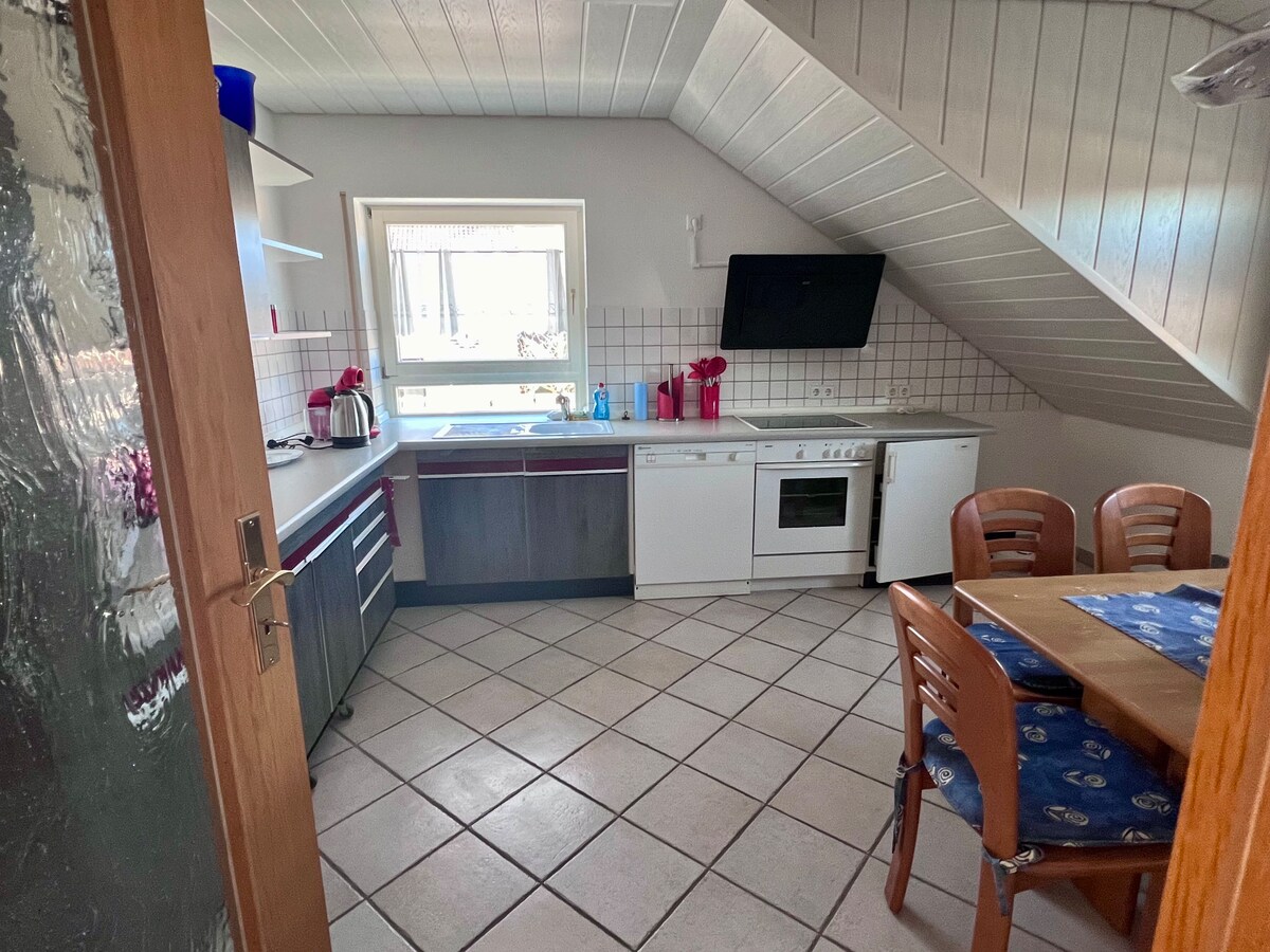 Appartament xemxi, mgħammar b' mod modern ta' 78m ² b' gallarija f' orjentazzjoni lejn il-Lbiċ u veduti panoramiċi mill-isbaħ għal 2 (4) persuni. Irrilassa f 'post kwiet. Mill-villaġġ idilliku ta' Brigachtal, li jinsab fuq livell għoli ta' Baar, tista' tasal f' 5 minuti biss bil-karozza: Il-belt distrettwali ta' Villingen-Schwenningen bil-belt qadima storika tagħha. Bad Dürrheim, il-belt ta' Kneipp – spa b' pajsaġġi tas-salmura – spa. Donaueschingen, it-tieni l-ikbar belt fil-Foresta l-Iswed – Baar – distrett bir- "rebbiegħa tad-Danubju"