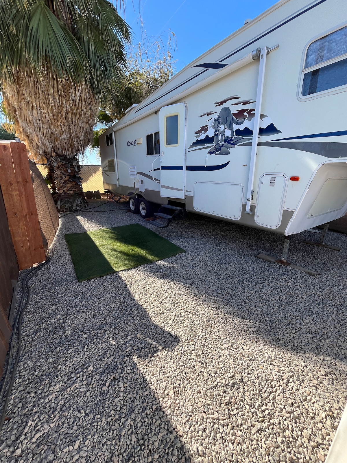 Spazjuż 35 Ft 5th Wheel Mgħammra b' kollox għall-vaganza li jmiss tiegħek. Post fejn toqgħod ġewwa Palo Verde CA 92266 sabiħa, din il-kiri hija l-gateway tiegħek għas-Sajd, Off-Roading u d-Dgħajjes. Parkeġġ sigur għal trakk, dgħajsa, OHV. Tinsab 3 mili 'l bogħod mix-xmara Colorado li qed tniedi f' Ox Bow. Atmosfera żgħira tal-komunità fejn jispikkaw l-istilel u l-muntanji, fil-mogħdijiet tax-xitwa li jistgħu jwassluk 'il bogħod mit-triq lejn il-baħar tal-melħ u fit-tbaħħir tas-sajf lejn Parker jew il-Lag Martinez. Jekk jogħġbok Ġib lożor u xugamani