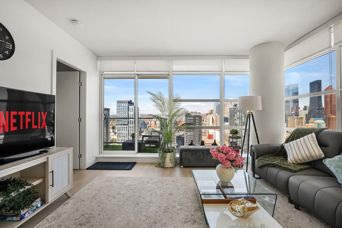 Merħba fil-kantuniera tal-ġenn tagħna ġewwa ċ-ċentru ta' Calgary! Din il-vaganza moderna toffrilek il-kombinazzjoni perfetta ta' konvenjenza, lussu u veduti impressjonanti. Hekk kif tidħol, se tkun immedjatament maqtugħ mit-twieqi mill-art sas-saqaf li juru l-orizzont mill-isbaħ tal-belt u l-veduti tal-muntanji maestużi. Jekk jogħġbok żomm f'moħħok li l-bibien ta' barra tal-binja jissakkru fl-22:00. Jekk tibbukkja, se jkollok tiġbor iċ-ċavetta/fob f' post differenti. *** Il-PIXXINA hija magħluqa għax-xitwa.