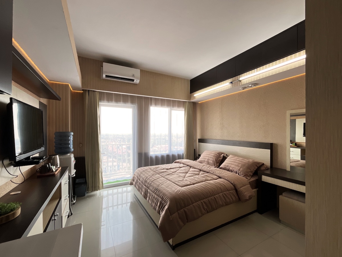Appartament studio ġdid fjamant u sempliċi iżda komdu li jinsab f 'lukanda ta' 4 stilel. Pixxina u Gym, il-faċilitajiet tal-lukandi huma b 'xejn biex tużahom. 24 siegħa Ċirku K huwa eżatt faċċata tat-triq. Ristoranti, Ħasil tal-Ħwejjeġ u ħwienet oħra huma biss distanza bil-mixi. Is-Servizz tax-Xarabank Dirett lejn l-Ajruport Internazzjonali ta 'Soekarno Hatta ta' Jakarta jinsab biss fid-daħla tal-Lukanda b' rata favur il-baġit u postijiet komdi.(Rp.55K/pax bħala Ottubru 1,2019) B 'mod ġenerali, iż-żjara fil-post tagħna hija strateġika u mimlija faċilitajiet bażiċi.