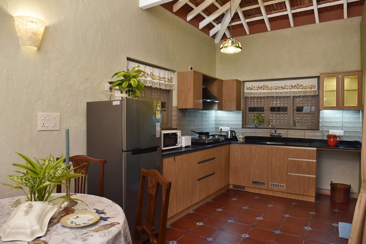 Din il-villa lussuża b'forma ta' A, li tinsab f'raħal kwiet ġewwa South Goa, hija mfassla għall-klijenti li qed ifittxu l-privatezza u l-kumdità. Gawdi minn pixxina privata, spazju għall-BBQ privat u parkeġġ appoġġjat minn persunal tat-tindif full-time. Il-villa għandha salott u kamra tal-ikel mimlija xemx, Kċina, Ġnien, kamra tas-sodda eleganti li tħares lejn il-muntanji b'sodda king u sufan li jista' jsir sodda ta' wieħed, u kamra tal-banju privata. Bogħod 20 minuta biss minn Varca Beach u 50 minuta mill-Ajruport ta' Dabolim, ideali għal koppji, familji żgħar u sħab.