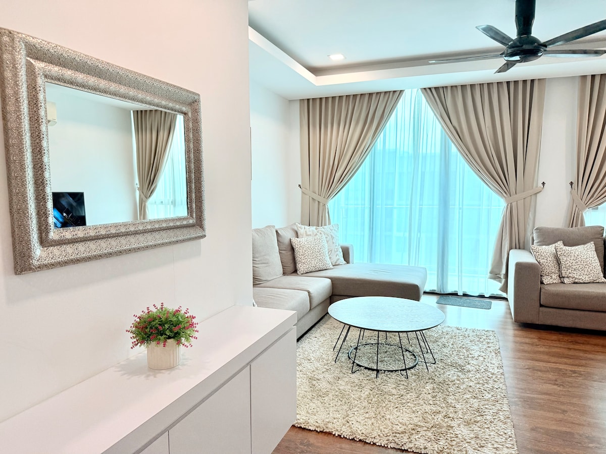 Gawdi żjara fl-appartament ġdid u nadif tagħna bi 3 ikmamar tas-sodda b' 2 ikmamar tal-banju. Aċċess bla ħlas għall-ġinnasju u l-pixxina. Il-lożor, l-imħaded u x-xugamani kollha jinħaslu friski wara kull żjara! Aeon Mall hija biss 5 minuti bil-mixi 'l bogħod, b' ħafna ristoranti, bars u ħwienet t' isfel. Distanza tas-sewqan sa: *Timberland Hospital 5 minuti * Sptar Ġenerali ta' Sarawak 6 minuti * Iċ-Ċentru Mediku ta' Borneo 8 minuti * Il-Mużew Kulturali ta' Borneo 10 minuti *Iċ-ċentru kummerċjali tar-Rebbiegħa 10 minuti * Vivacity12-il minuta * Kuching faċċata tal-ilma 10 minuti