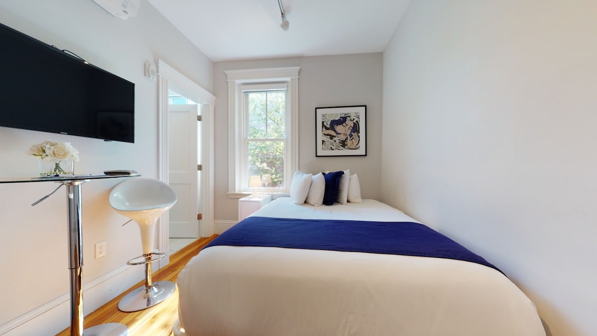 "Studio" fit-3 sular espona travi tal-injam, 2 ħitan tal-briks, tieqa 1 & tamboċċi. Slide-out Reġina sodda, 2 sufani konvertibbli, mejda tal-pranzu, & satelita tv. Kċina żgħira w/sink, microwave u mini friġġ. Kamra tal-banju żgħira w/ toilet u doċċa. Post għall-parkeġġ fil-belt jekk għandek karozza iżda l-ferrovija lejn/minn Boston hija inqas minn mil 'il bogħod.