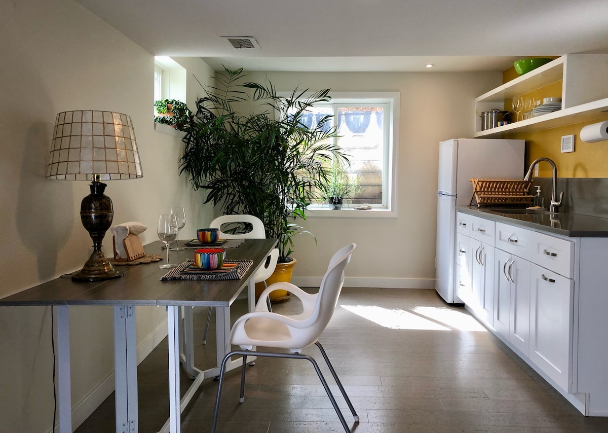 Din is-suite privata ġewwa North Boulder hija spazju privat, mimli xemx u li jilqgħek. Tinsab fis-sular ewlieni tad-dar tagħna (mhux fil-kantina). Għandha daħla separata, parkeġġ faċli, kċina u ħanut tal-merċa fil-qrib. M' hemm l-ebda spazju maqsum mal-oħrajn! Aħna rikba ta' malajr fuq ir-rota jew Uber lejn iċ-ċentru, Pearl St., u CU Boulder! Inti tinsab qrib l-azzjoni imma 'l bogħod biżżejjed biex torqod iljieli paċifiċi. Nieħdu gost nilqgħu klijenti ġodda u nixtiequ nagħmlu ż-żjara tiegħek ġewwa Boulder waħda komda.