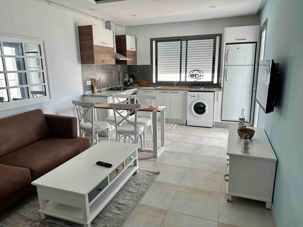 Appartament sabiħ ispirat mill-baħar, qrib il-kumditajiet kollha (spiżerija tal-ġurnata u tal-lejl, sptar, ħanut ta 'konvenjenza, kafetteriji, ristoranti, park tal-ilma, quad bikes,...aċċessibbli bil-mixi.